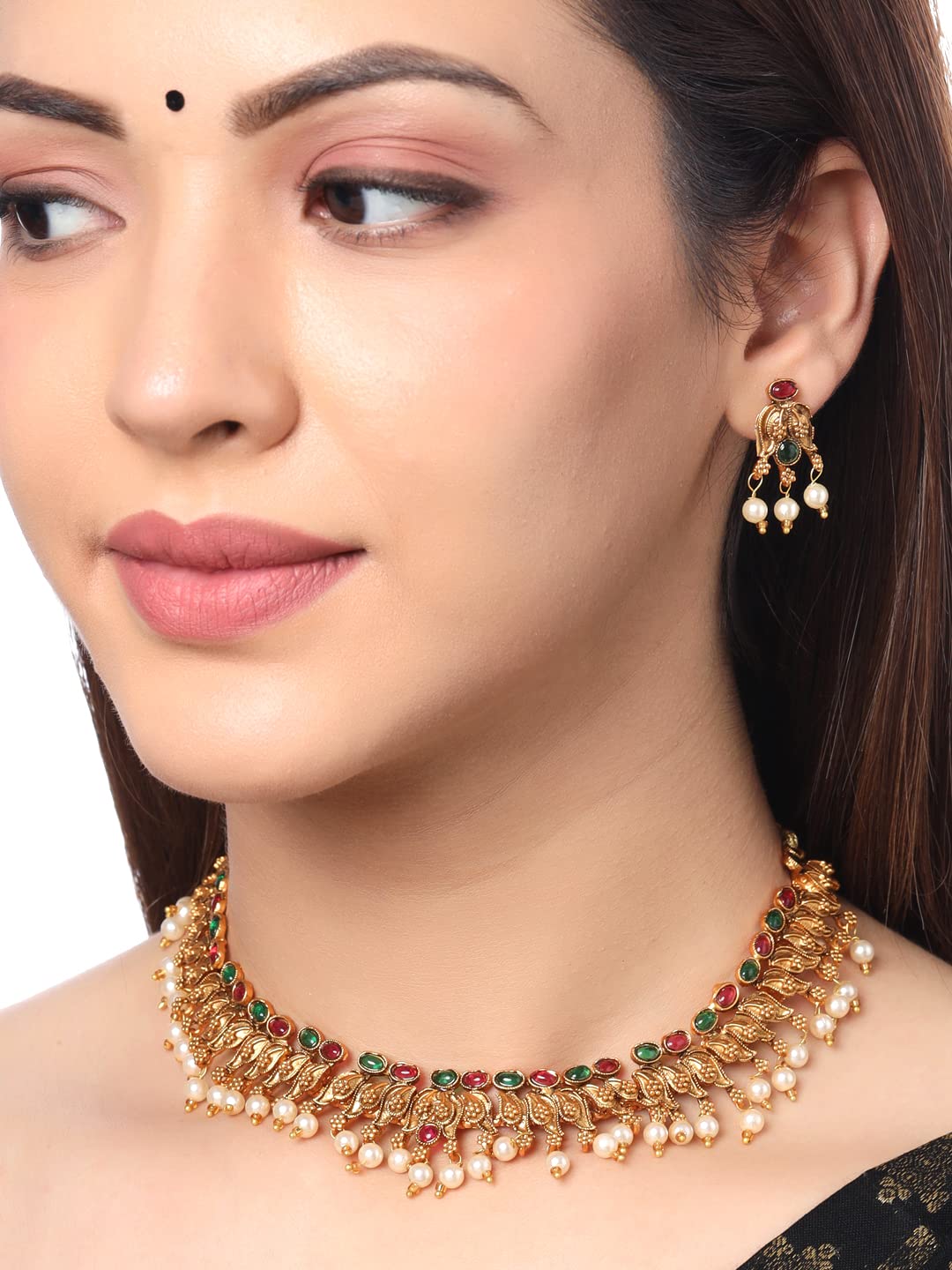 - Unique Design: The elegant choker necklace is adorned with colorful embellishments, reflecting the grandeur of temple deities and celebrating feminine grace.
