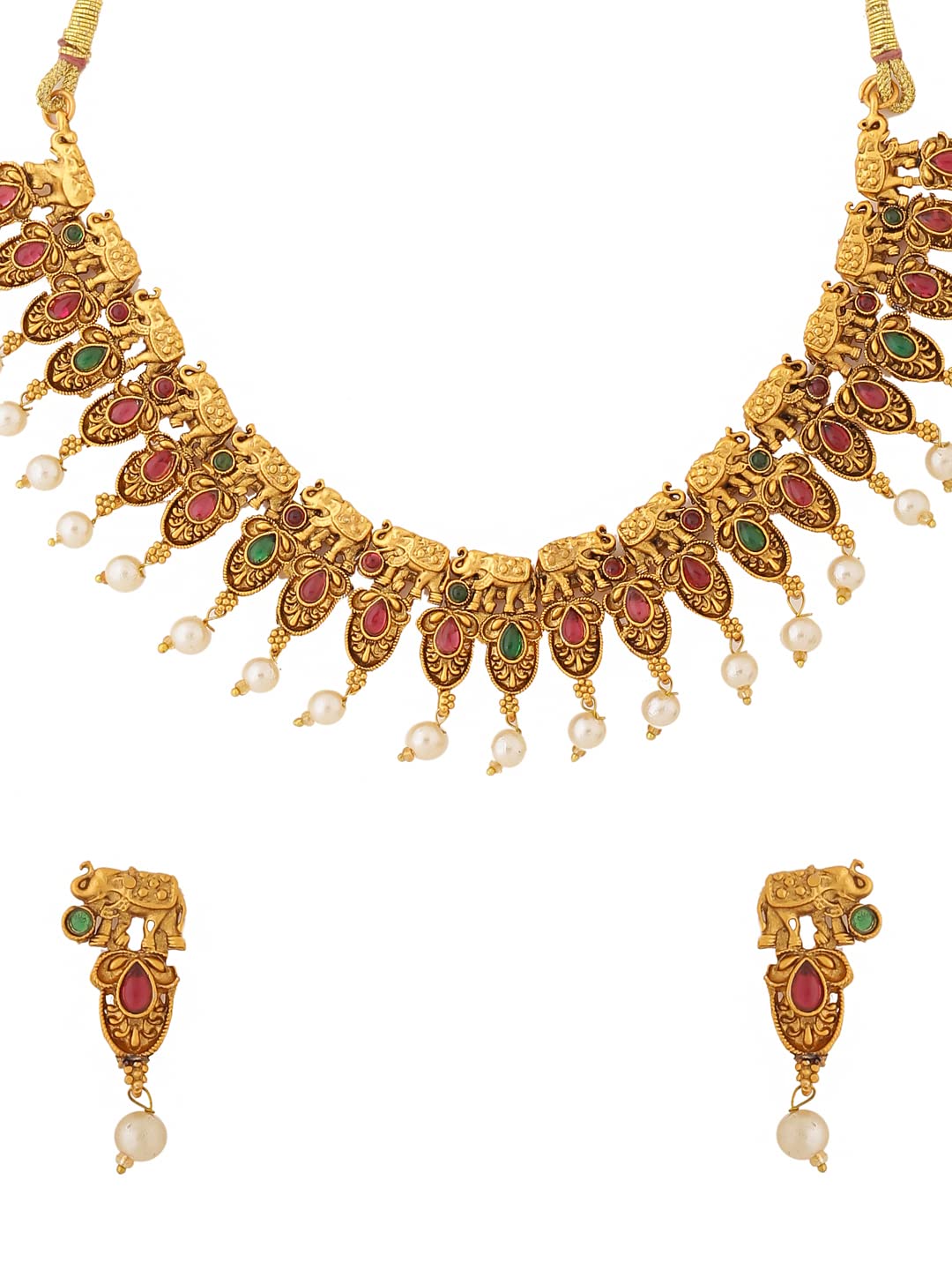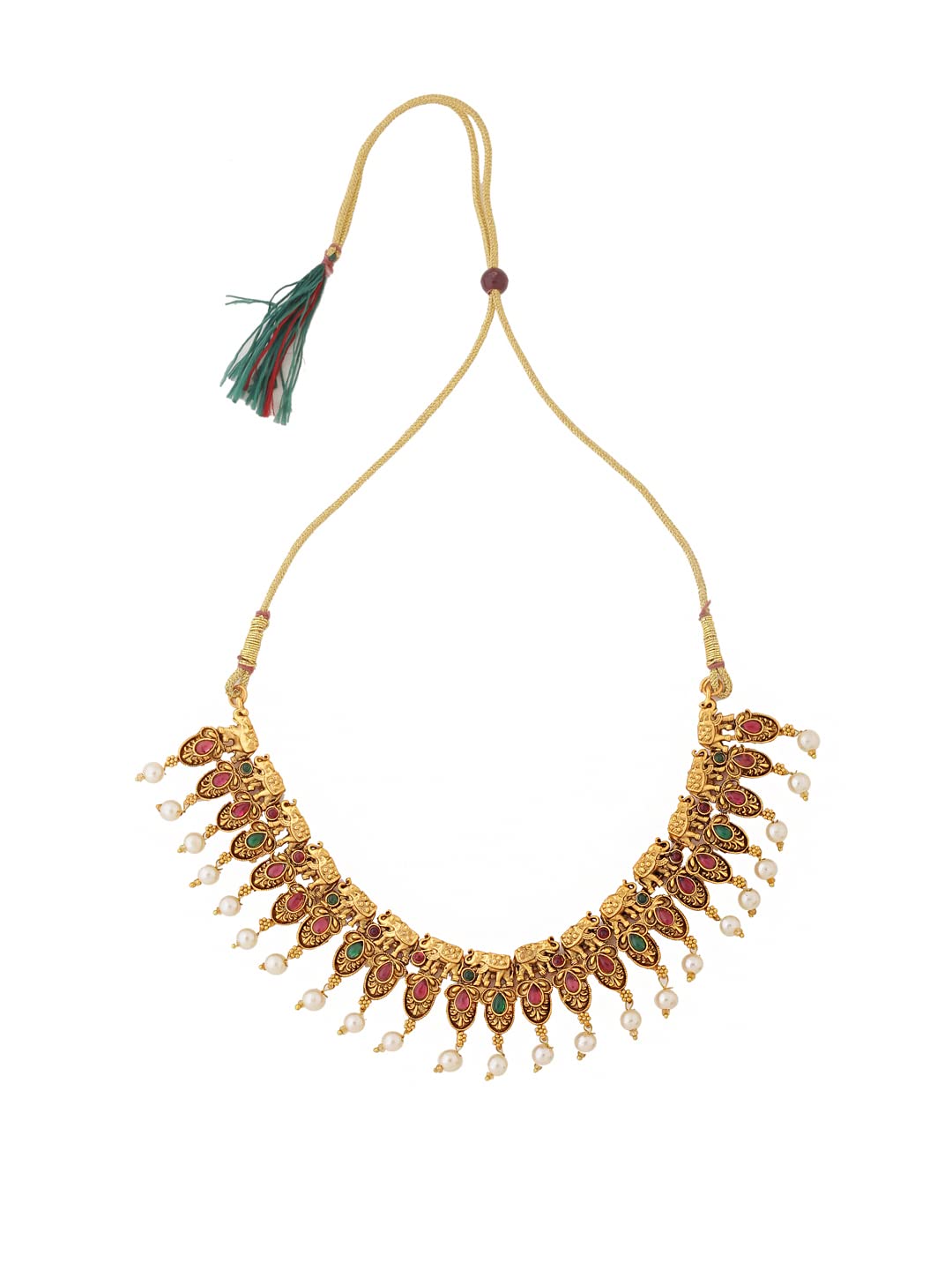 - While draped in six yards of silk, your real enigmatic charm comes alive through this Necklace Set. Let your radiant face come into the spotlight with this handcrafted artisan work purely from the southern part of India.