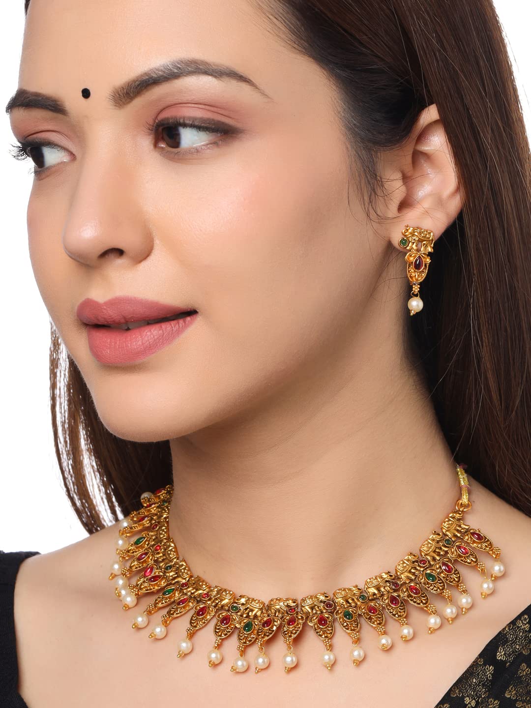 Jewellery Set for Women Gold Plated Beads Drop Designed Crystals Studded Bridal Choker Necklace Set for Women and Girls