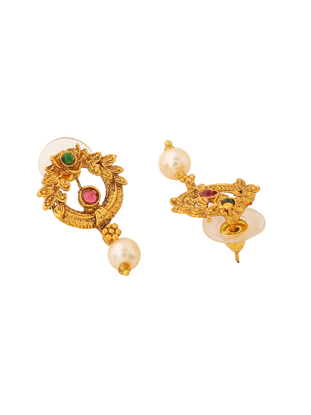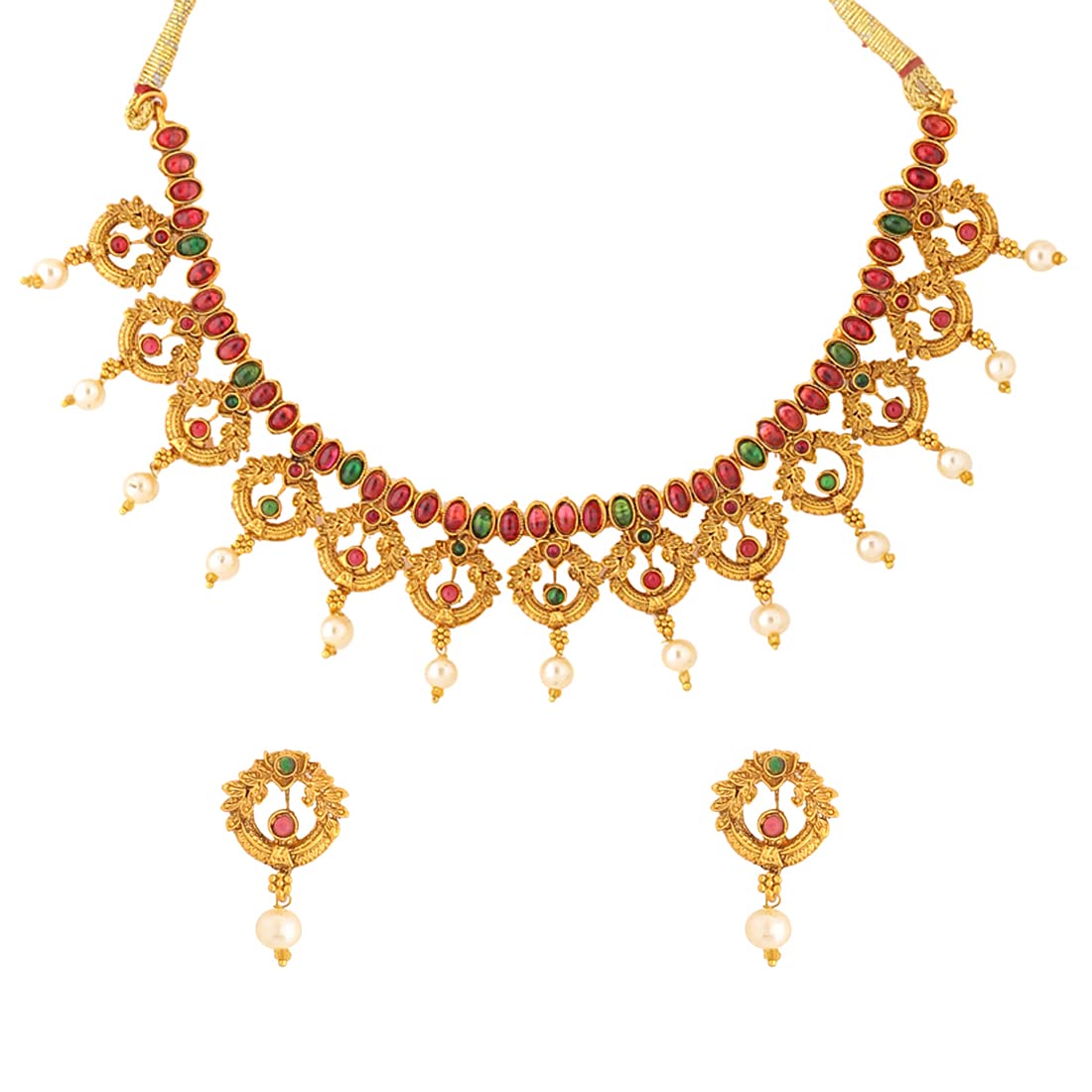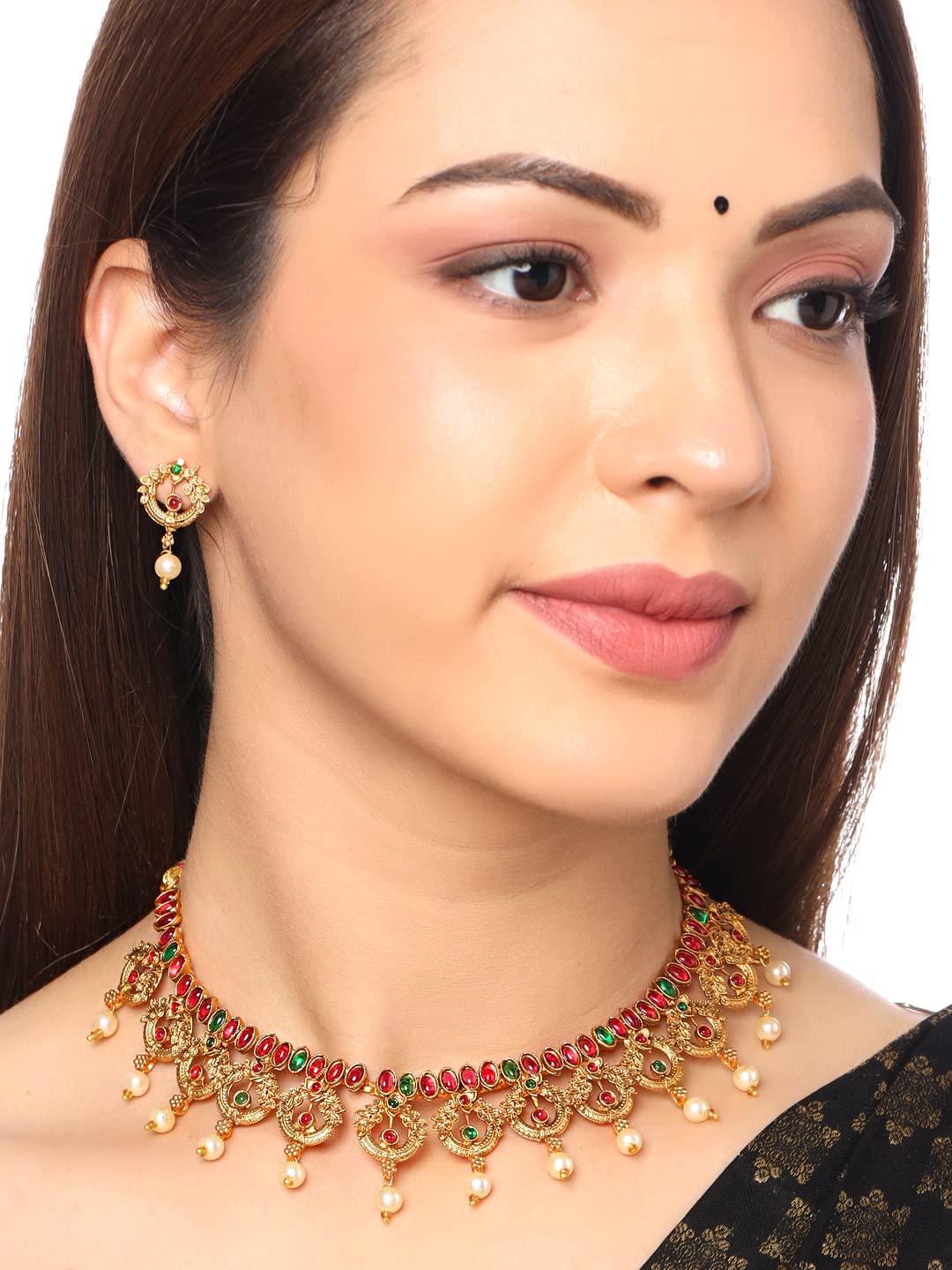 Jewellery Set for Women Gold Plated Beads Drop Designed Crystals Studded Bridal Choker Necklace Set for Women and Girls