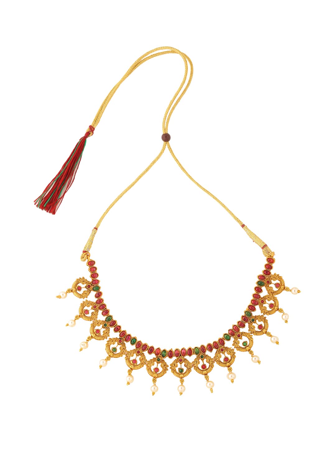 - While draped in six yards of silk, your real enigmatic charm comes alive through this Necklace Set. Let your radiant face come into the spotlight with this handcrafted artisan work purely from the southern part of India.