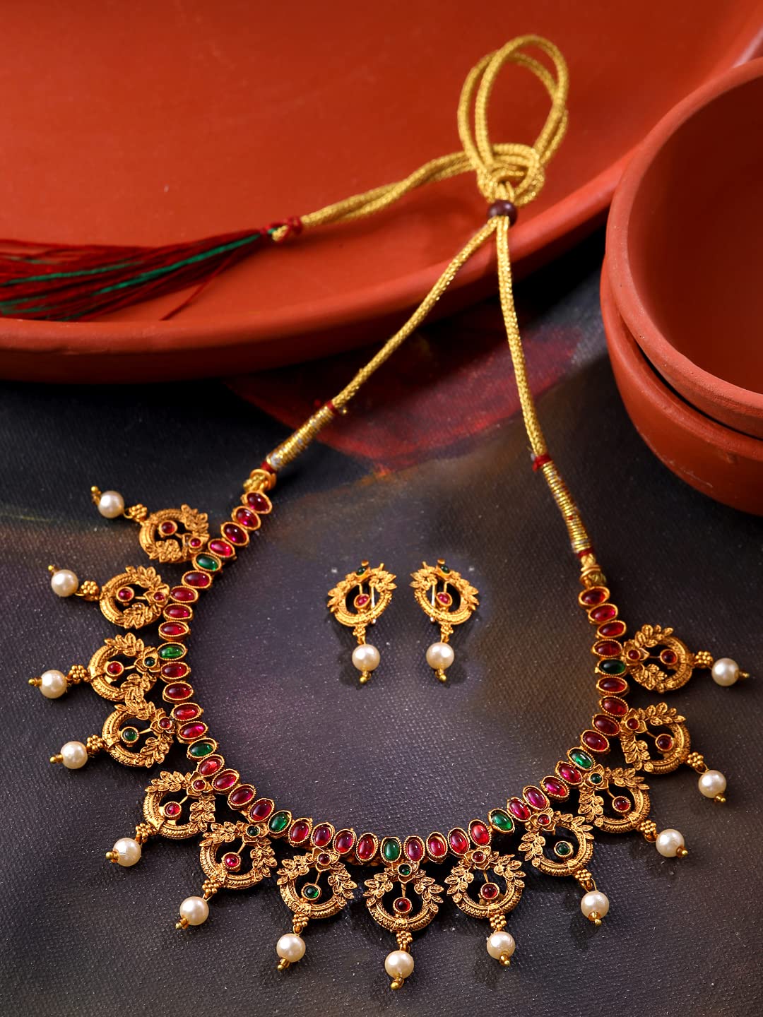 Yellow Chimes Jewellery Set for Women Gold Plated Beads Drop Designed Crystals Studded Bridal Choker Necklace Set for Women and Girls
