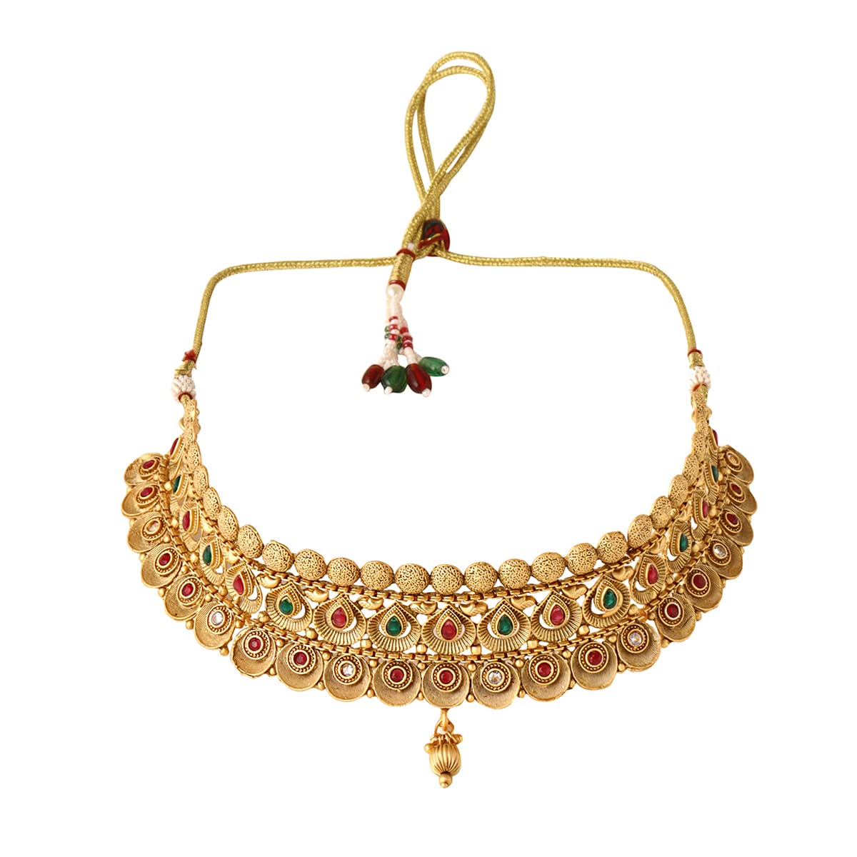 - While draped in six yards of silk, your real enigmatic charm comes alive through this Choker Necklace Set. Let your radiant face come into the spotlight with this handcrafted artisan work purely from the southern part of India.
