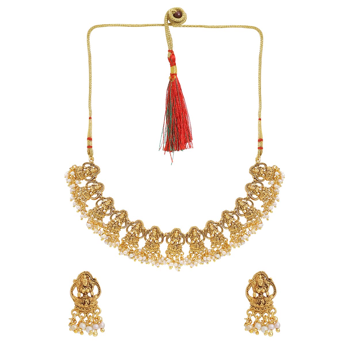 Yellow Chimes Jewellery Set For Women Gold Plated Traditional Choker Necklace Set with Earrings Temple Jewellery Set For Women and Girls