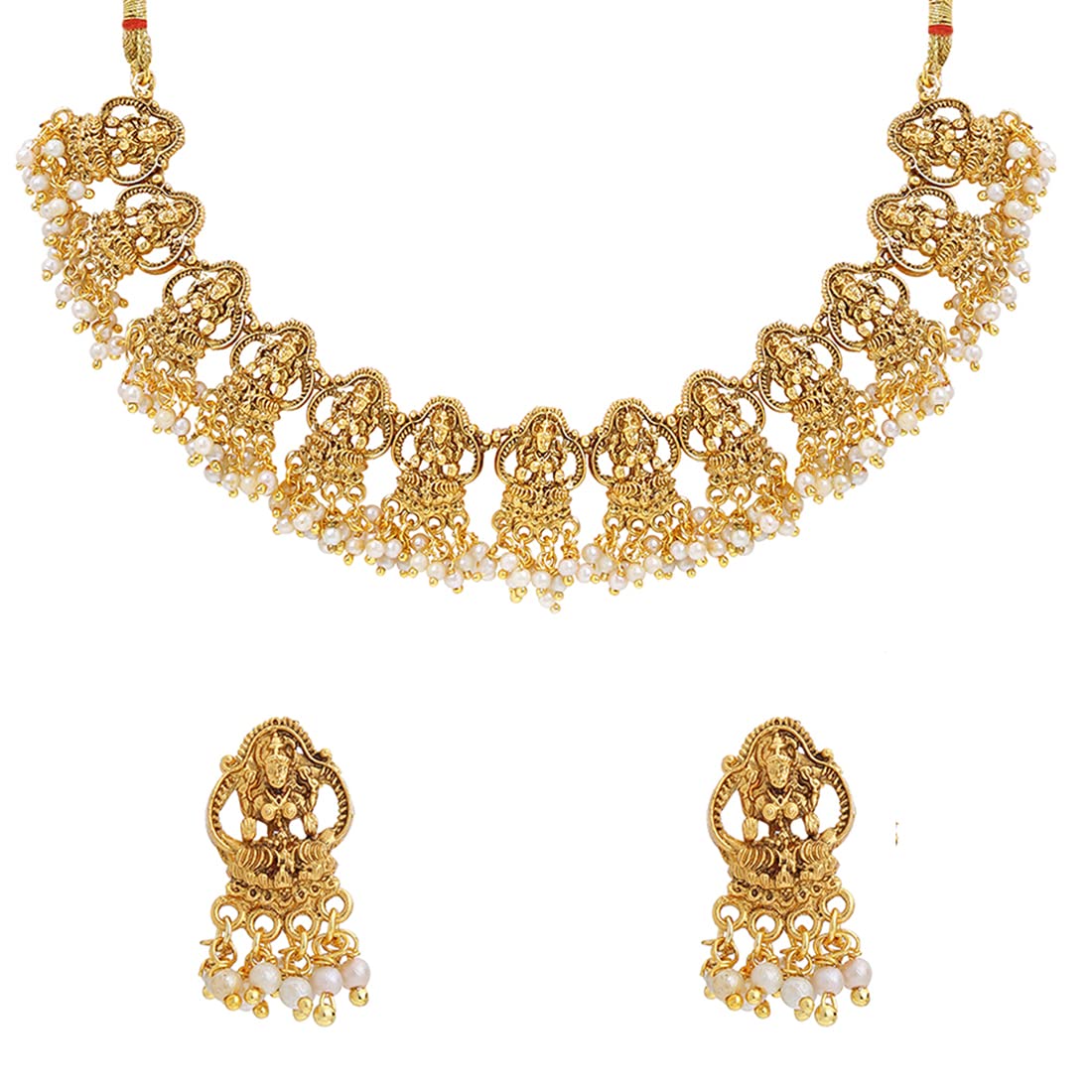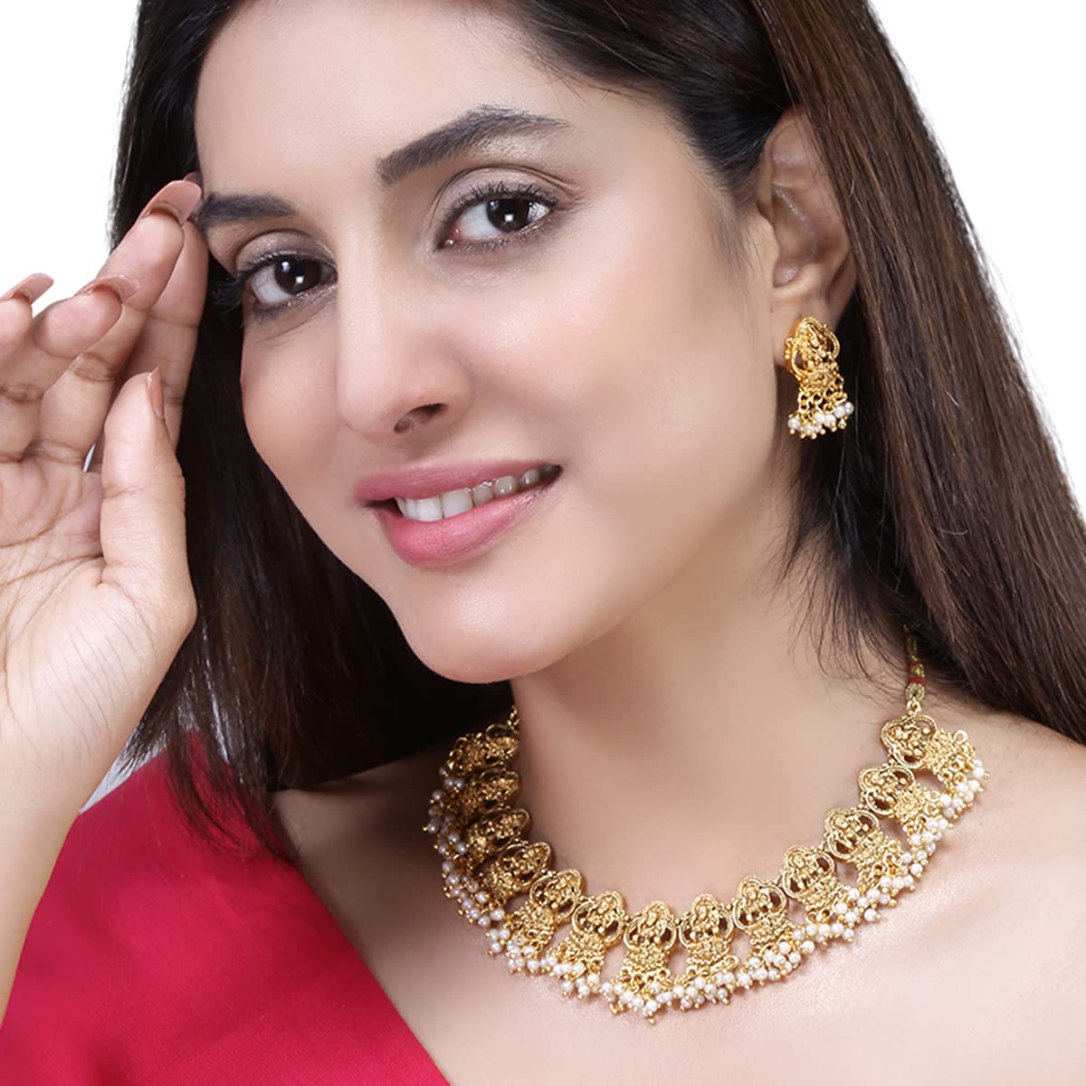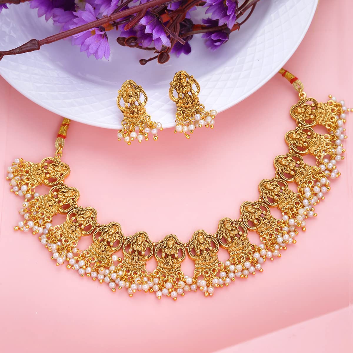 Jewellery Set For Women Gold Plated Traditional Choker Necklace Set with Earrings Temple Jewellery Set For Women and Girls