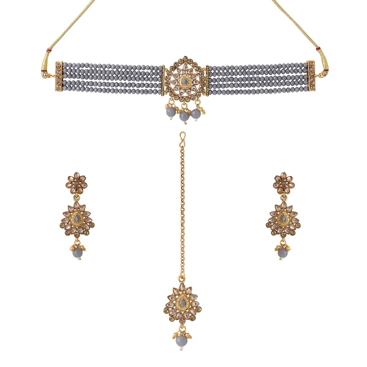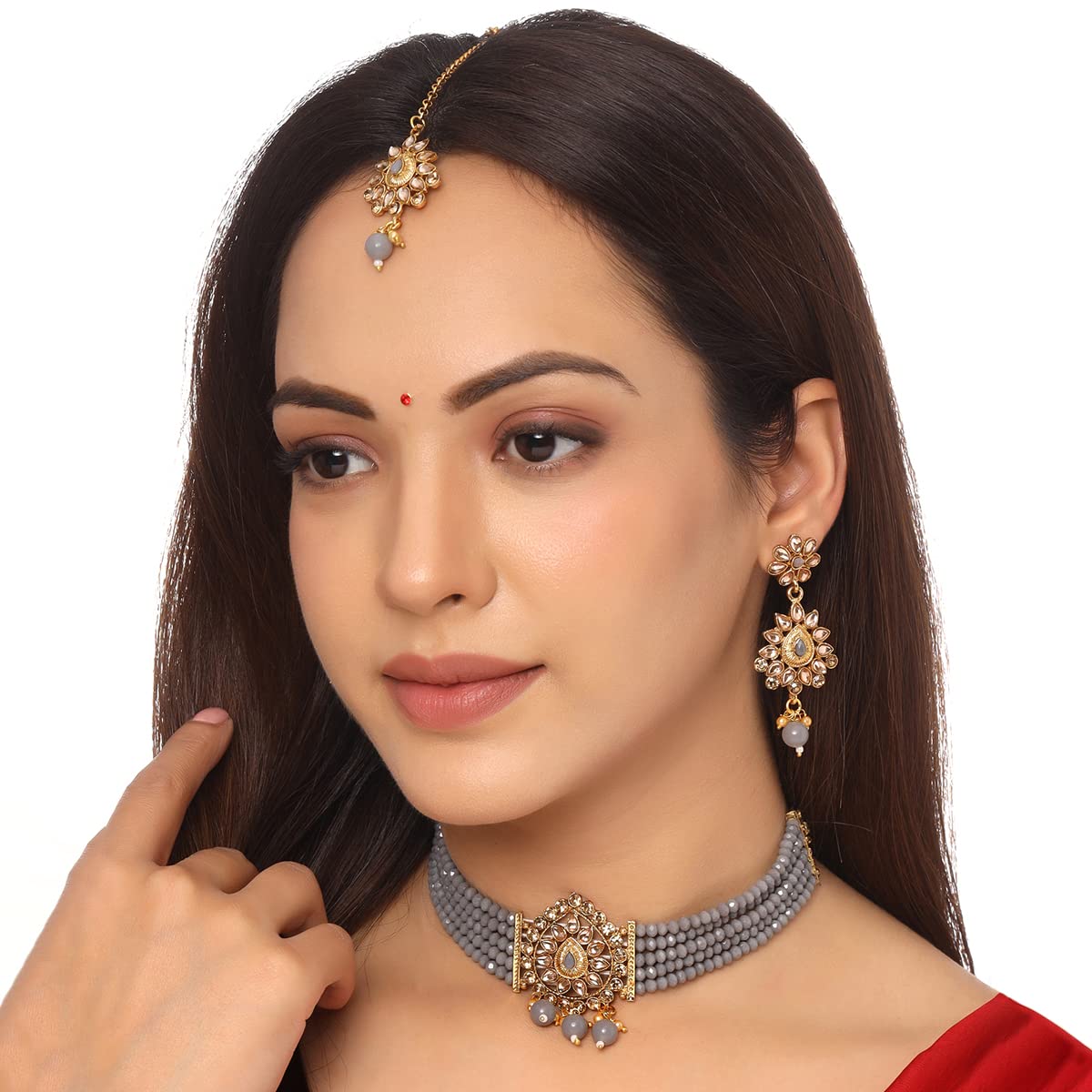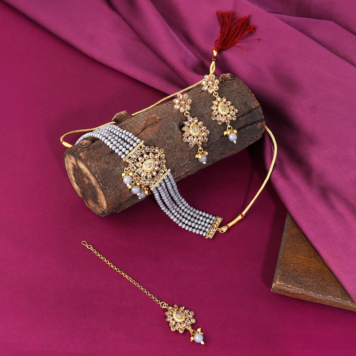Jewellery Set For Women Kundan studded Choker Set With Earrings and Mangtikka For Women and Girls