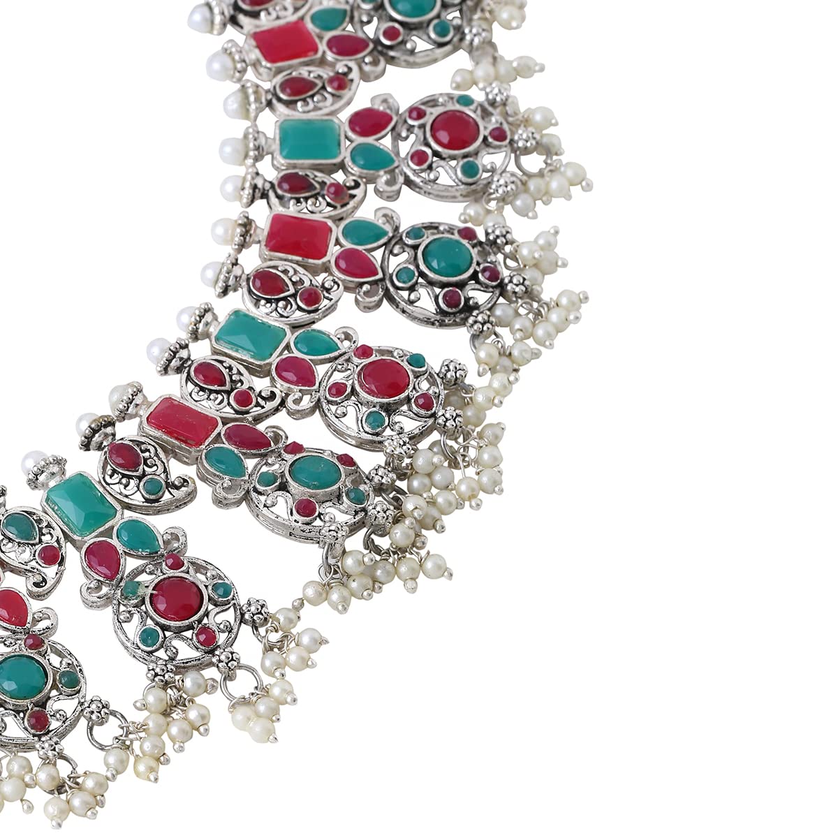 Jewellery Set For Women Pink and Green Stone Beaded Pearl Studded Exquisite Choker Necklace Set For Women and Girls