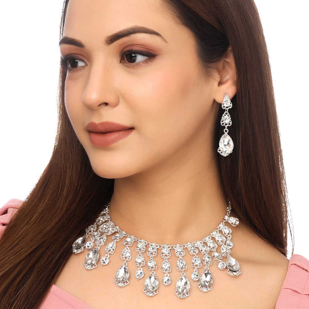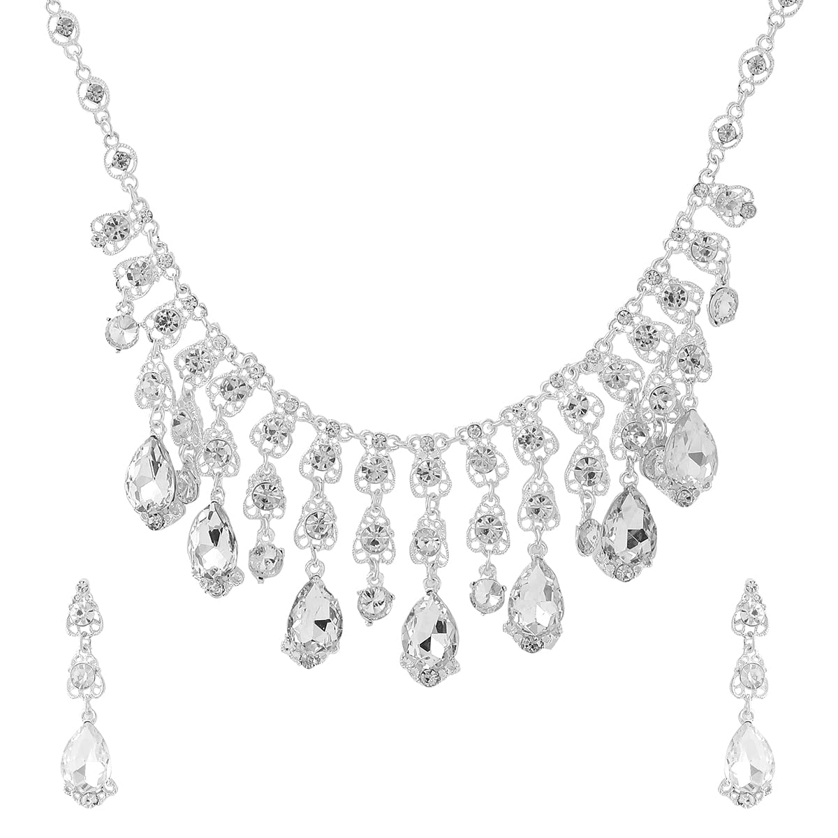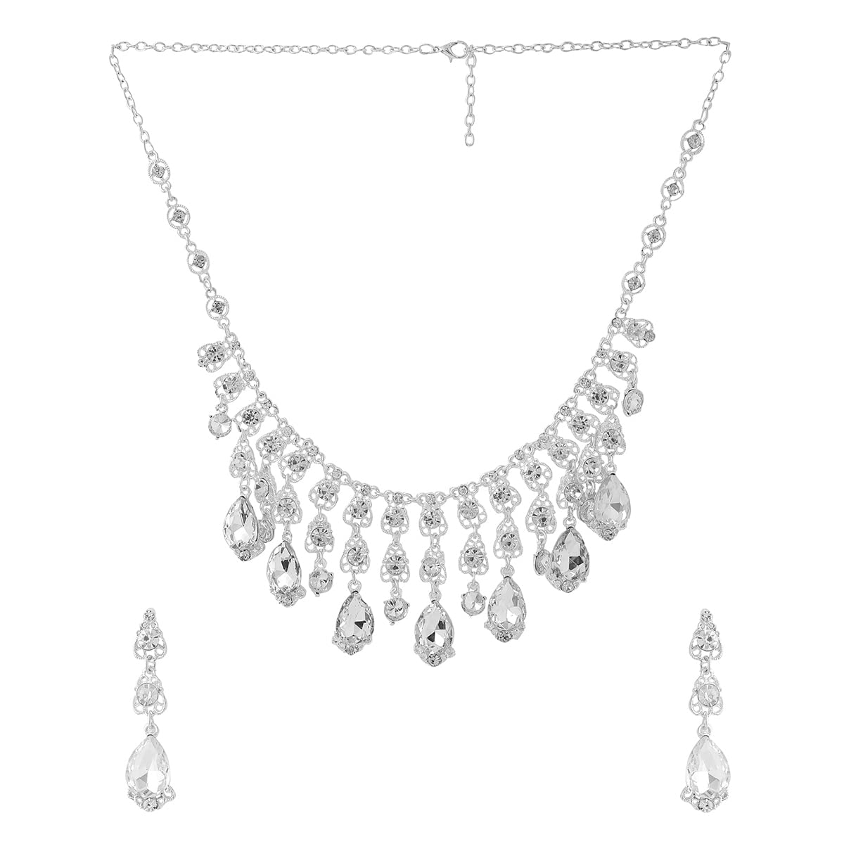 Jewellery Set For Women Silver Toned Tear Drop Crystal Designed Necklace Set With Earring For Women and Girl
