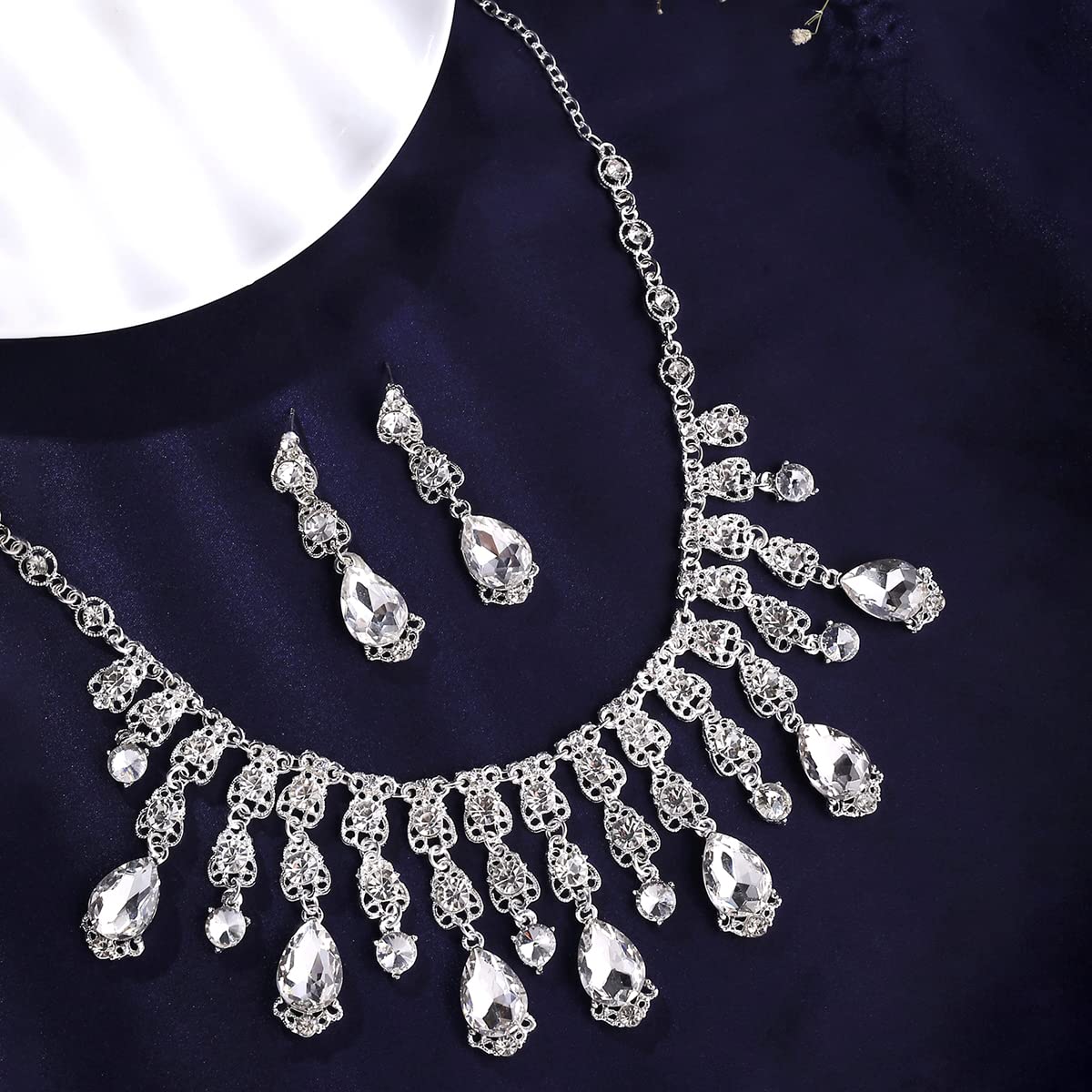 - Stunning Design: Crafted with Austrian high-grade crystals, the necklace set boasts a spectacularly stunning appearance that captures the light beautifully.
