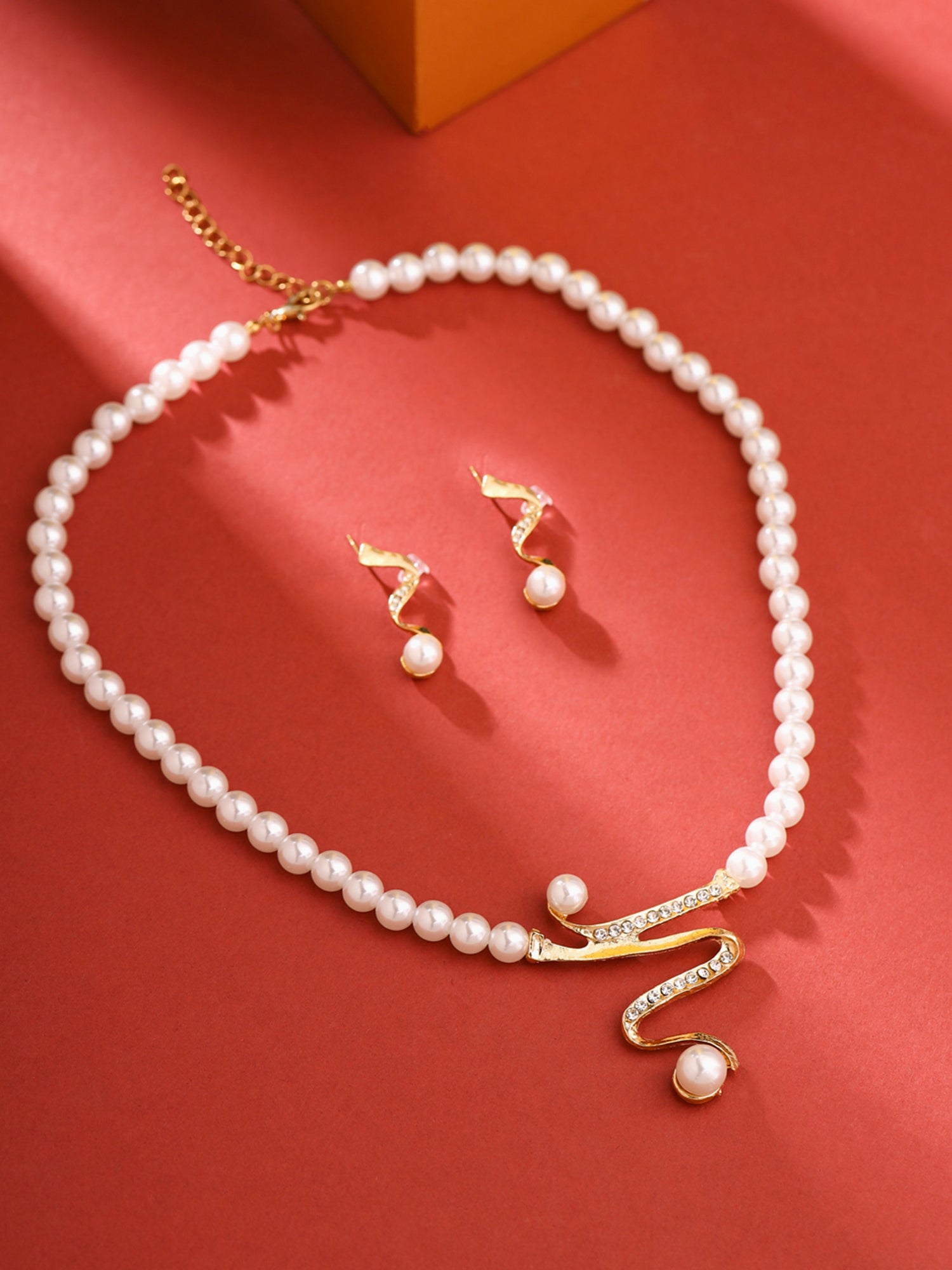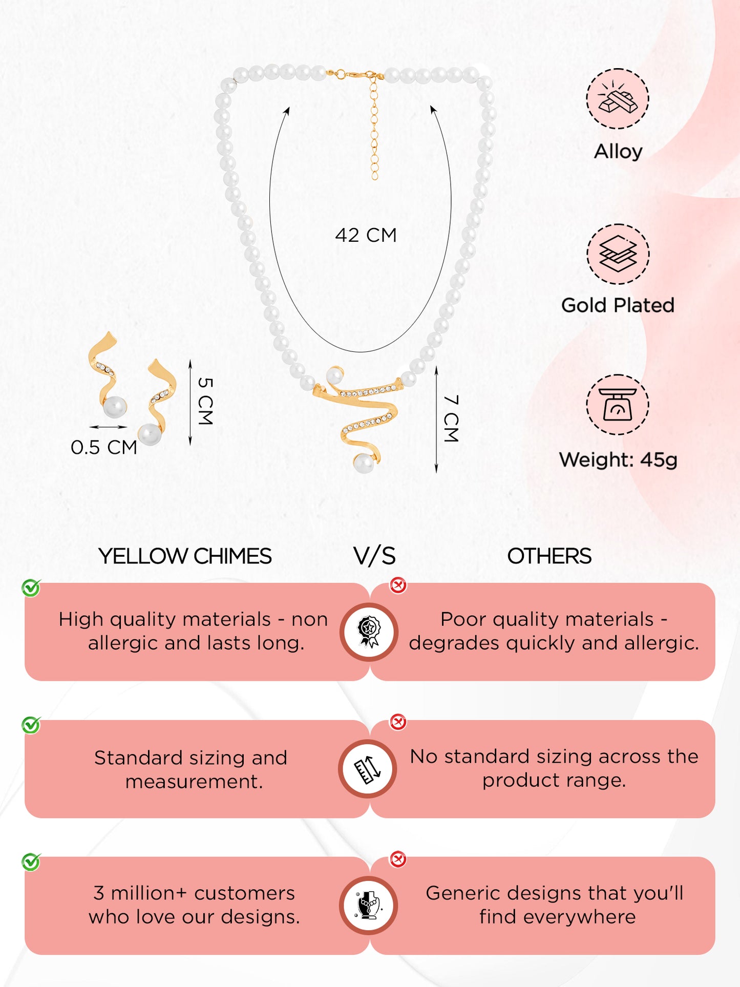 Yellow Chimes Jewellery Set for Women | White Pearl Necklace Set for Women | Gold Plated Fashion Jewellery Set for Girls | Birthday Gift for Girls & Women Anniversary Gift for Wife