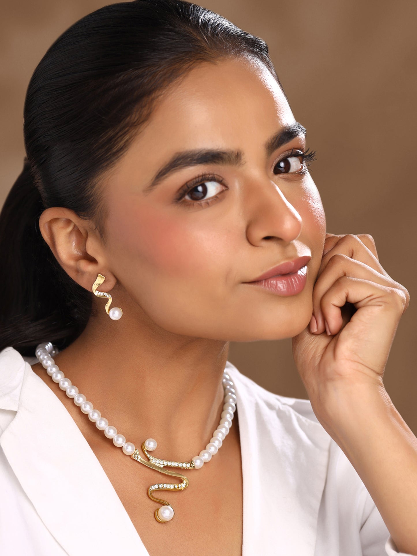 Jewellery Set for Women | White Pearl Necklace Set for Women | Gold Plated Fashion Jewellery Set for Girls | Birthday Gift for Girls & Women Anniversary Gift for Wife