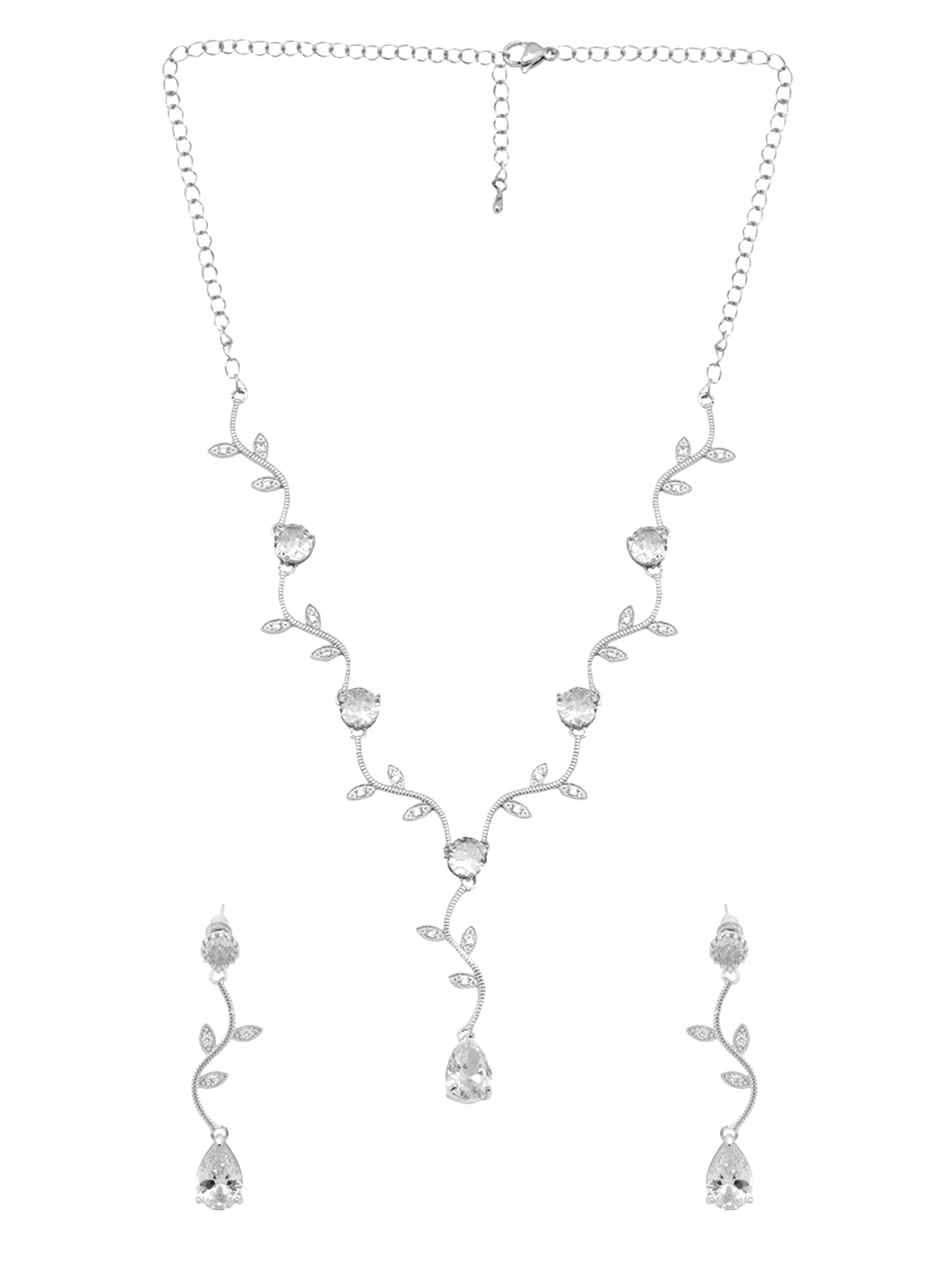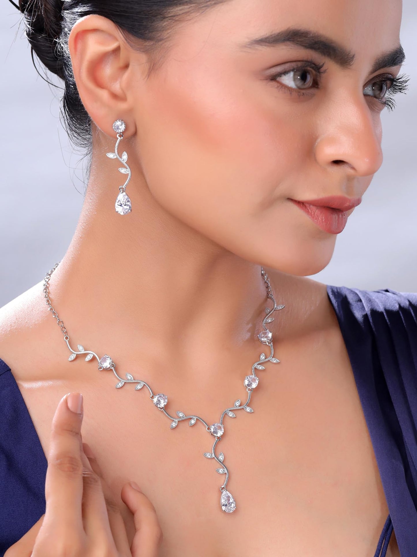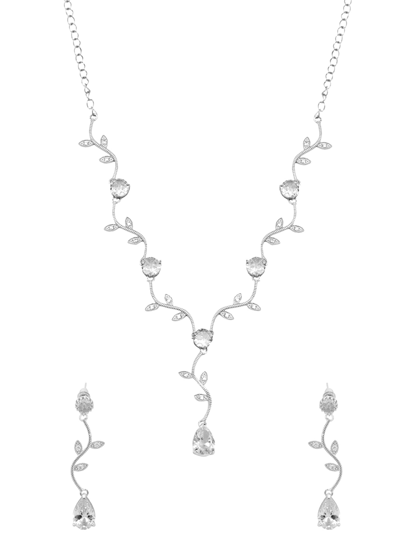 Jewellery Set for Women | White Stone Necklace Set for Women | Cubic Zircon Silver Diamond Jewellery Set |Rhodium Plated Necklace Set | Birthday Anniversary Gift for Women Wife