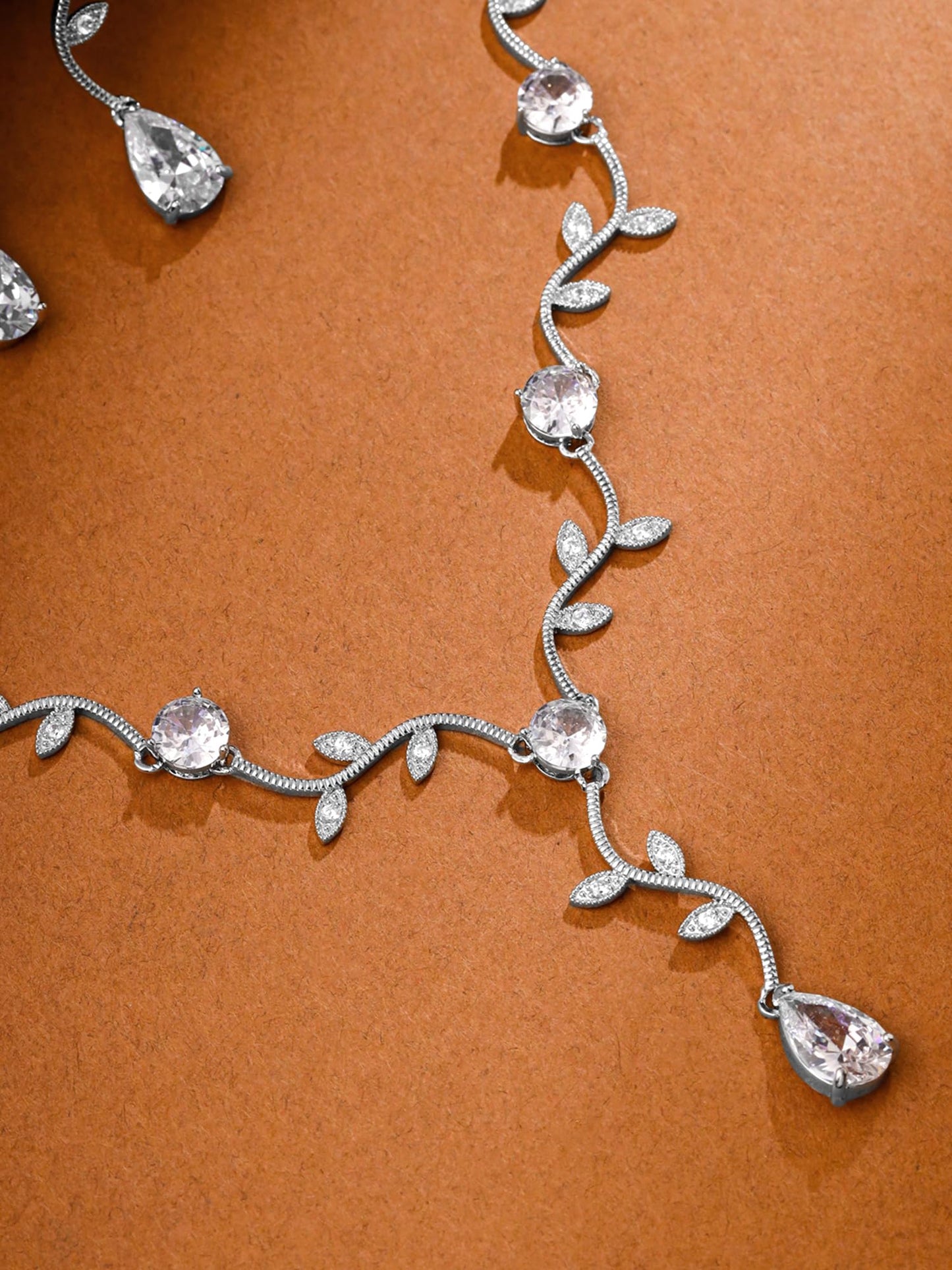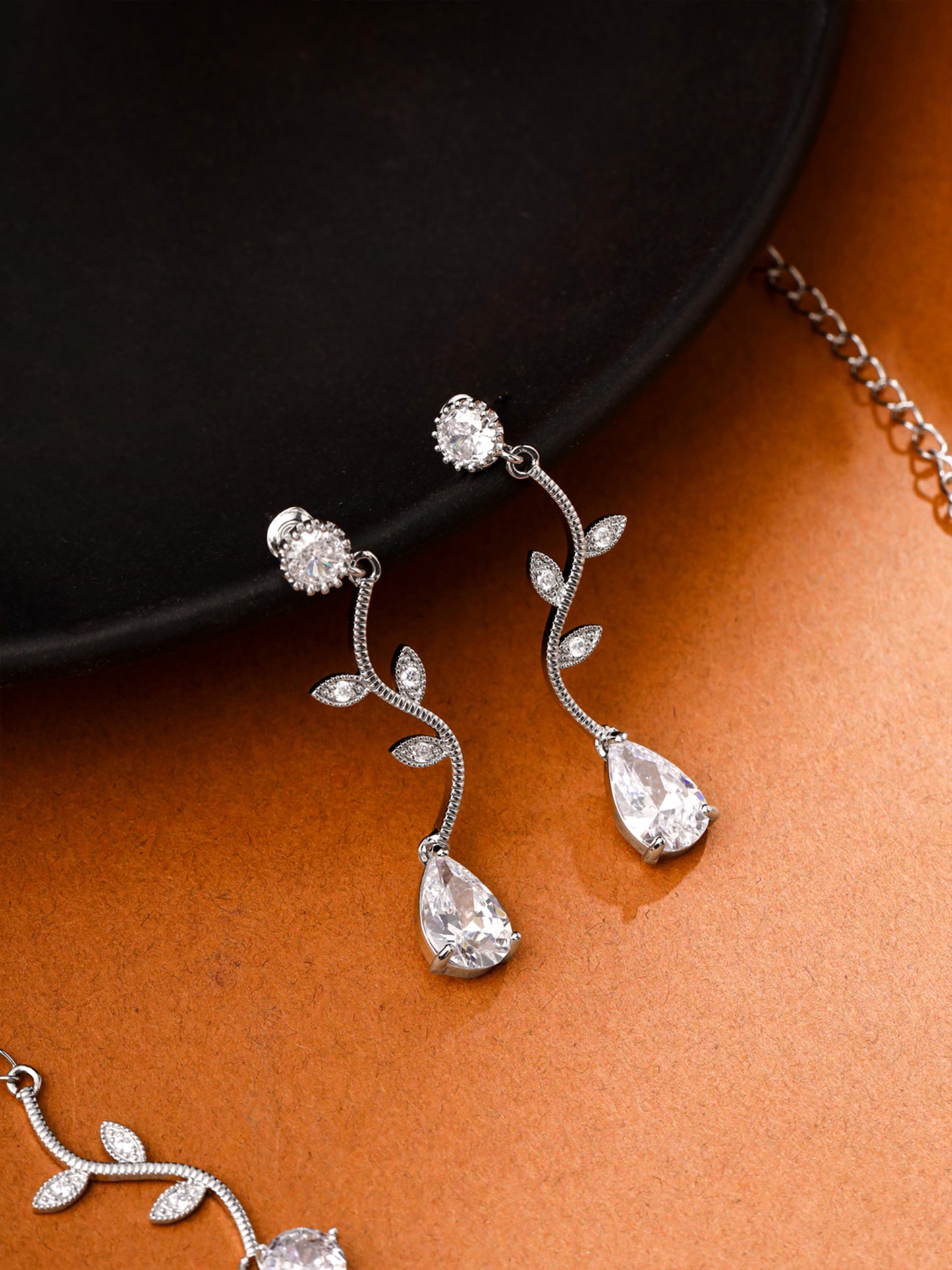 - The classic and elegant design can always keep pace with fashion. Sparkled wedding jewelry set for women includes high grade CZ floral shaped necklace and 1 pairs dangling earrings.With a classic and elegant design, this set of silver Bridal jewelry for wedding can perfectly complement your beauty and bring you a unique wearing experience.