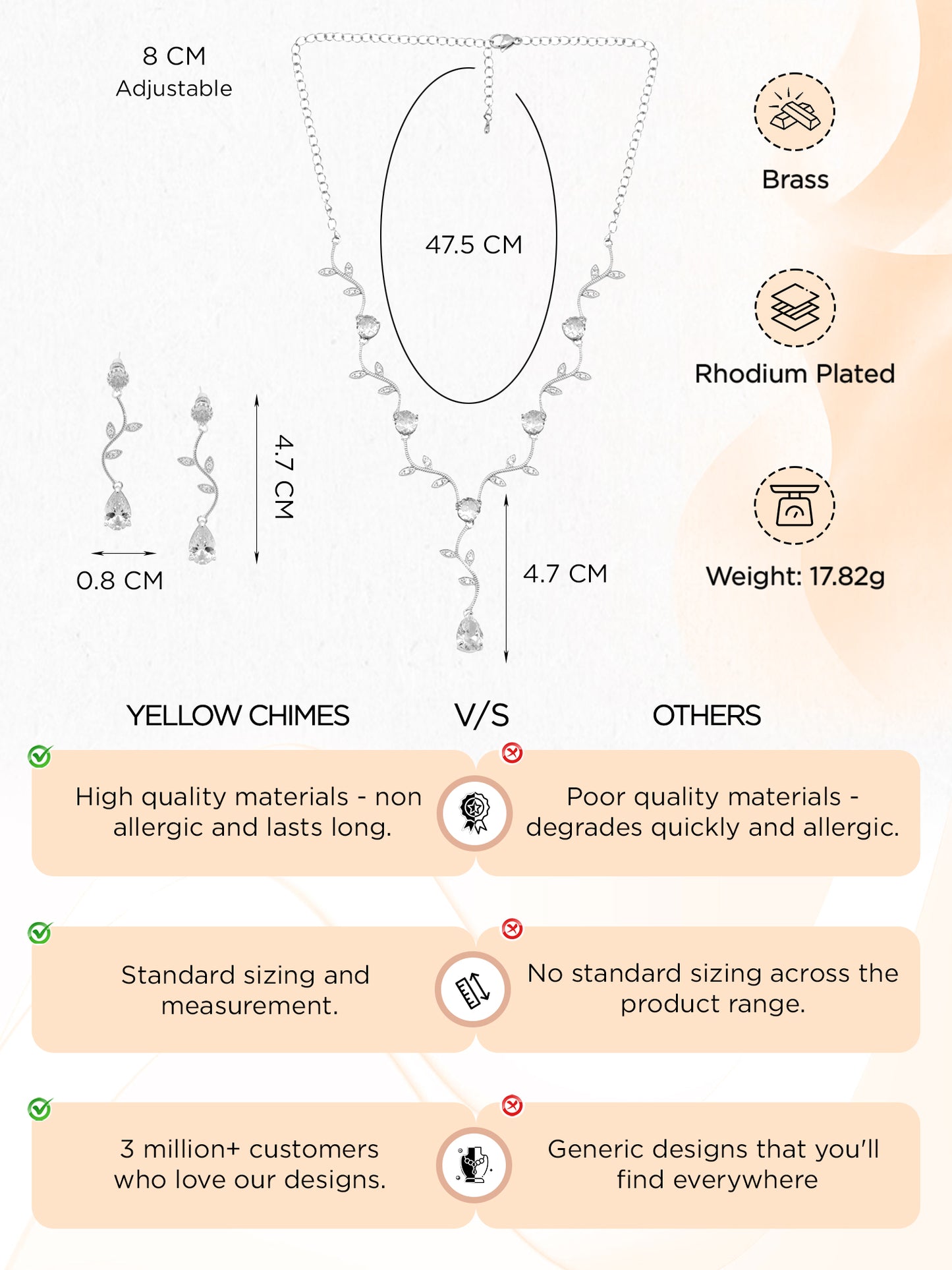Yellow Chimes Jewellery Set for Women | White Stone Necklace Set for Women | Cubic Zircon Silver Diamond Jewellery Set |Rhodium Plated Necklace Set | Birthday Anniversary Gift for Women Wife