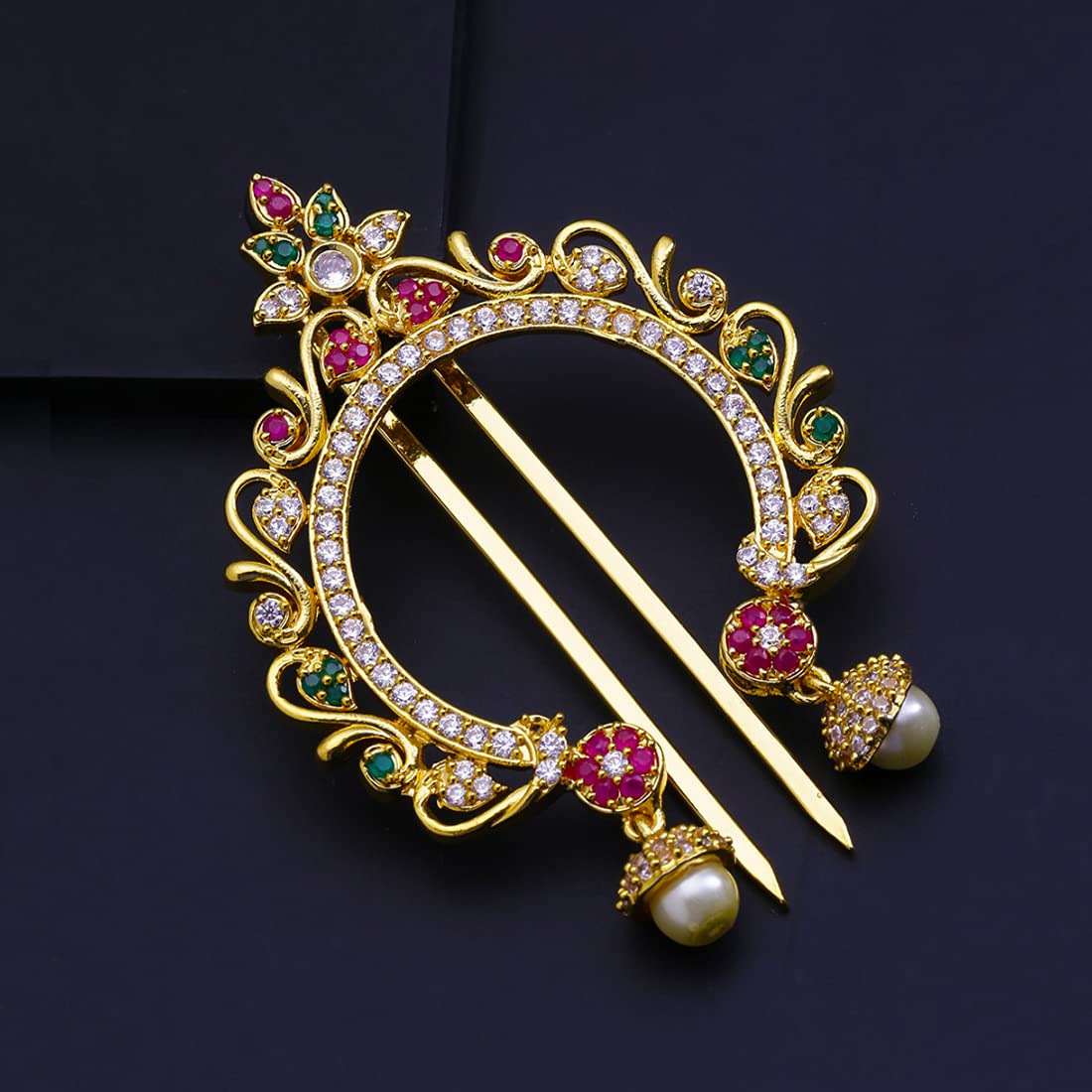 - Sparkling Luxurious Looks High Grade Multicolour AD Stones Bridal Juda pin. Produced under Quality Control; One by One Checking; Focus on Detail Processing