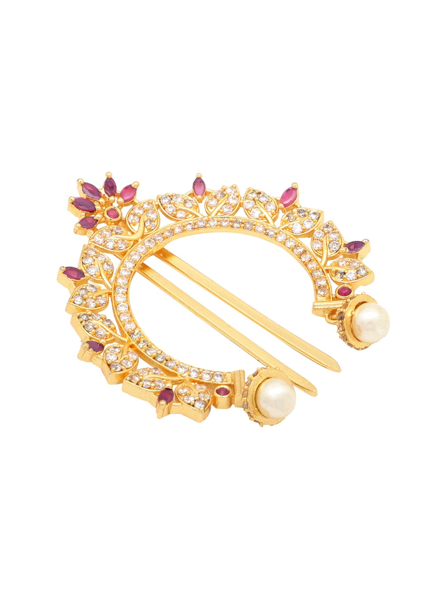 Yellow Chimes Juda Pin for Women AD/American Diamond Juda Pin Flower Hair Accessories Gold Plated Bridal Ambada Juda Pin for Women and Girls.