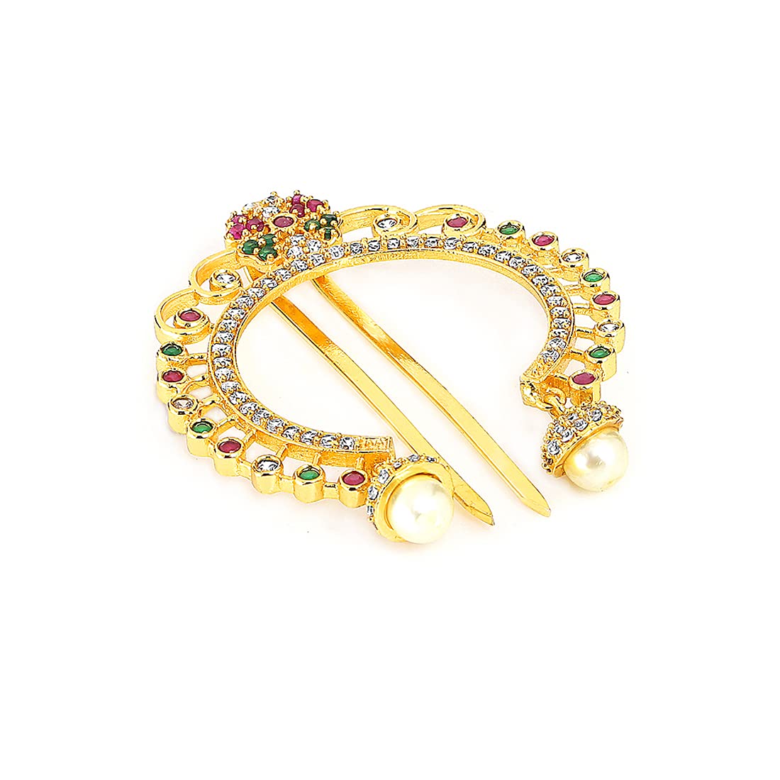 - Sparkling Luxurious Looks High Grade Multicolour AD Stones Bridal Juda pin. Produced under Quality Control; One by One Checking; Focus on Detail Processing