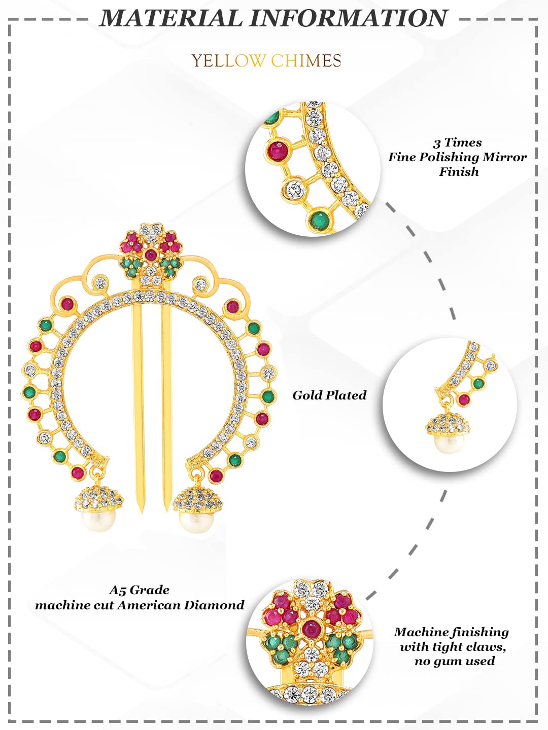 Yellow Chimes Juda Pin for Women AD/American Diamond Juda Pin Floral Design Hair Accessories Gold Plated Bridal Ambada Juda Pin for Women and Girls.