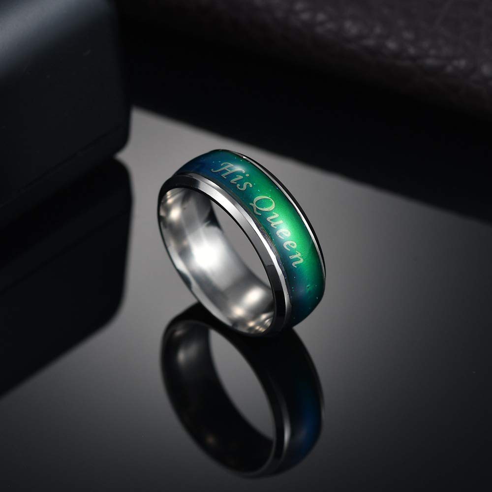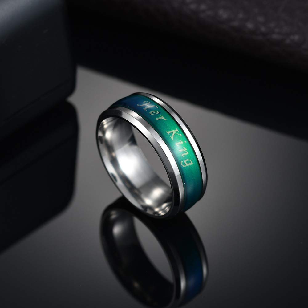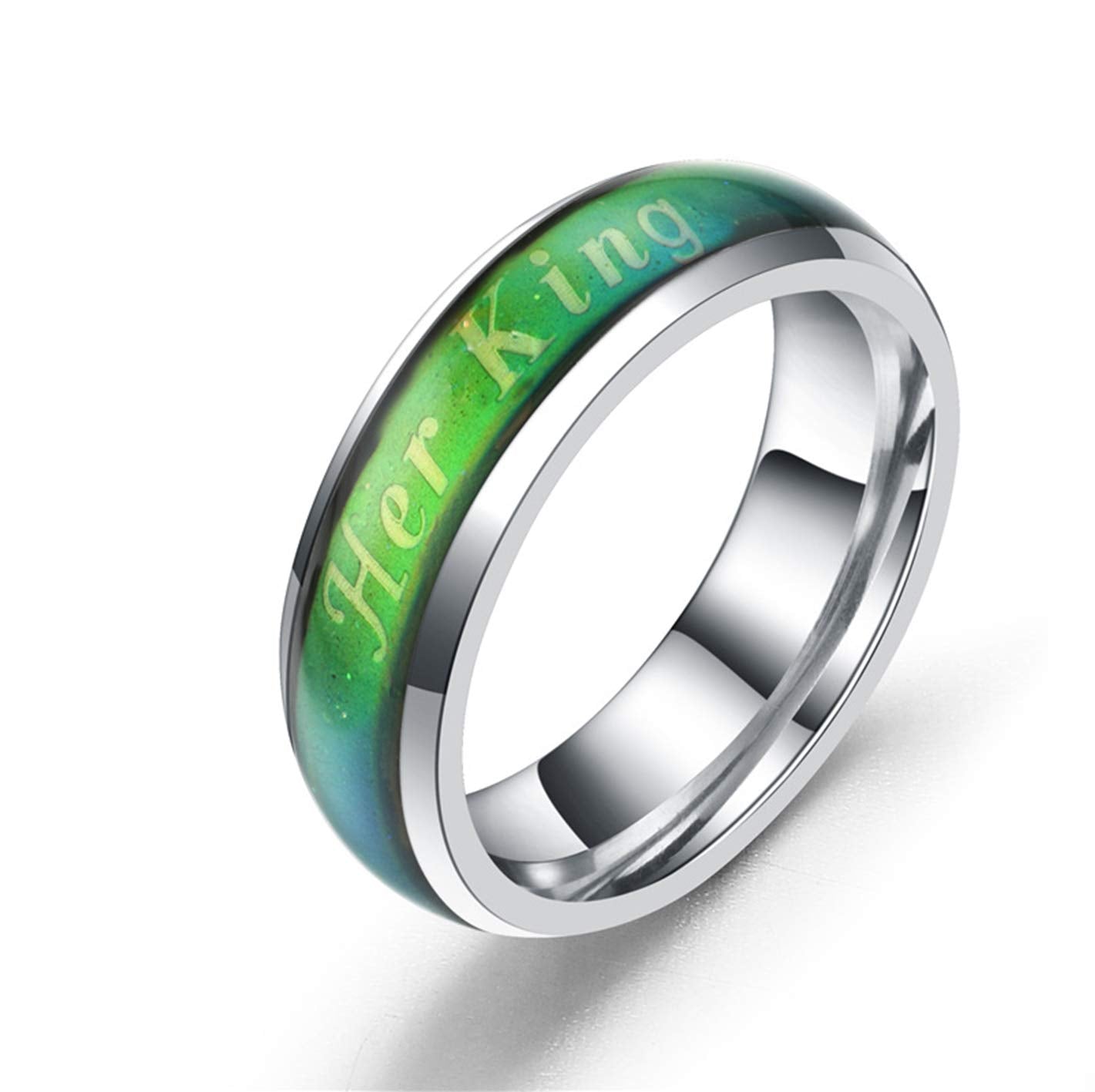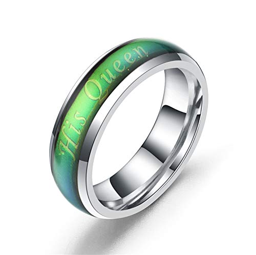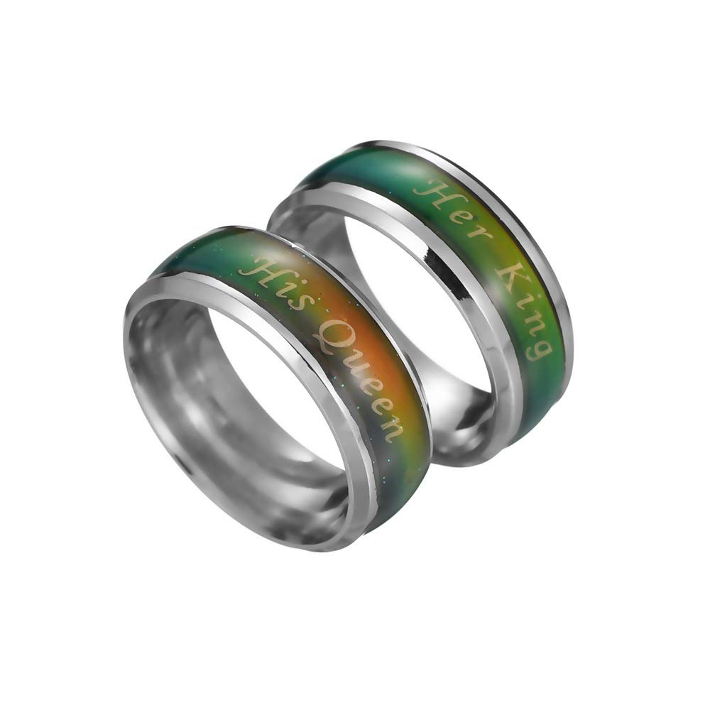 King Queen Steel Couple Rings Temperature Color Changing by Silver Ring for Women (Silver) (YCFJCR-92TEMP-SL)