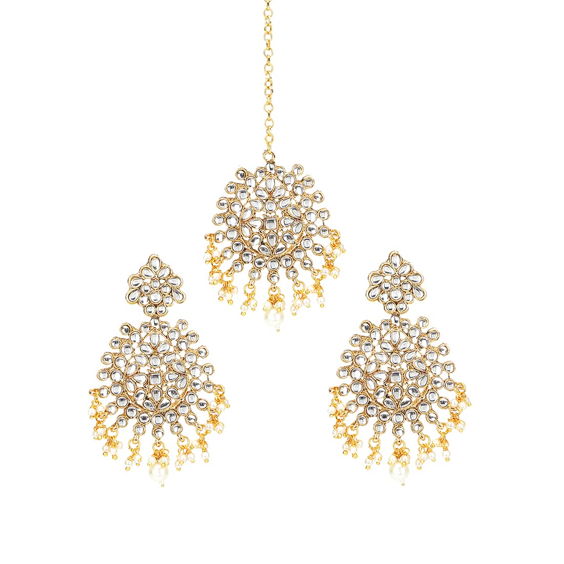 Yellow Chimes Kundan Jewellery Set for Women Gold Plated Kundan Earrings White Pearl Dangler Earrings With Maangtikka Set for Women and Girls.