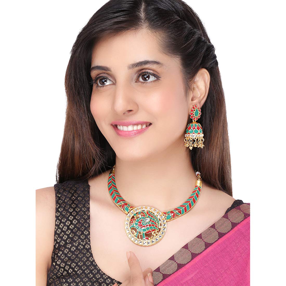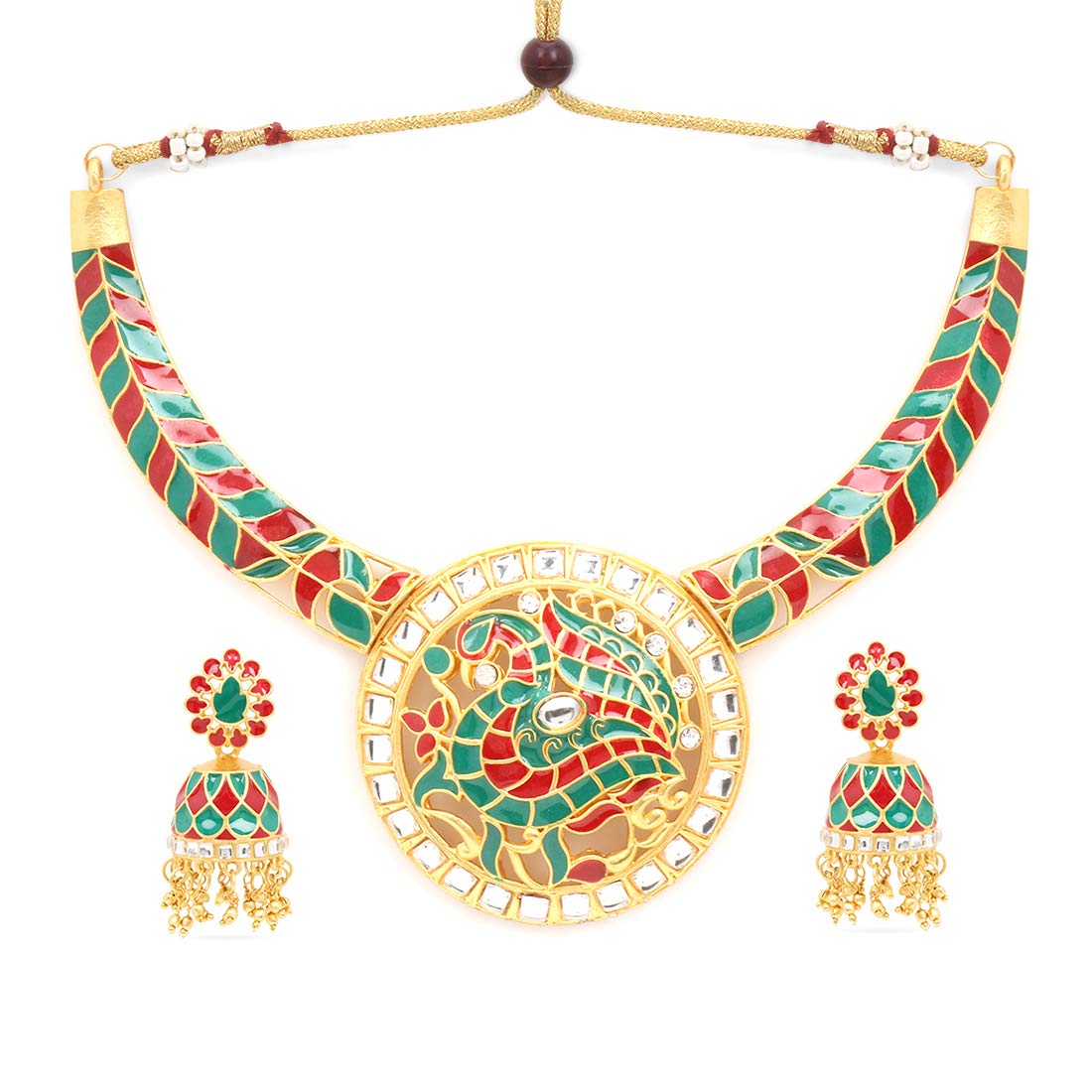 - Ethnic & Stylish Looks Meenakari Touch gold plated traditional Designer choker necklace set Stunning and Preciously Suitable Looks for all Kinds of Occasions- Party / Festival / Outings.