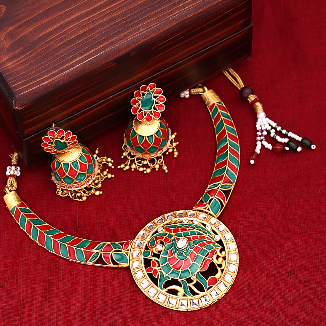 - Traditional Craftsmanship: Adorned with intricate Meenakari work, this jewellery set reflects the rich cultural heritage of India.