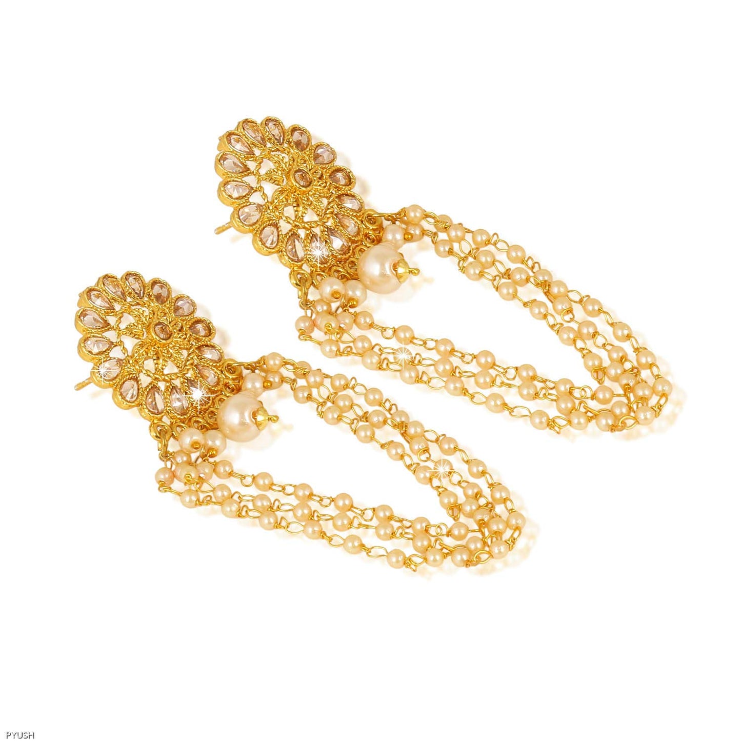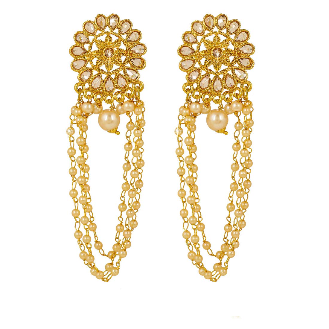 Yellow Chimes Kundan Studded Gold Plated Traditional Latkan Earrings for Women and Girls