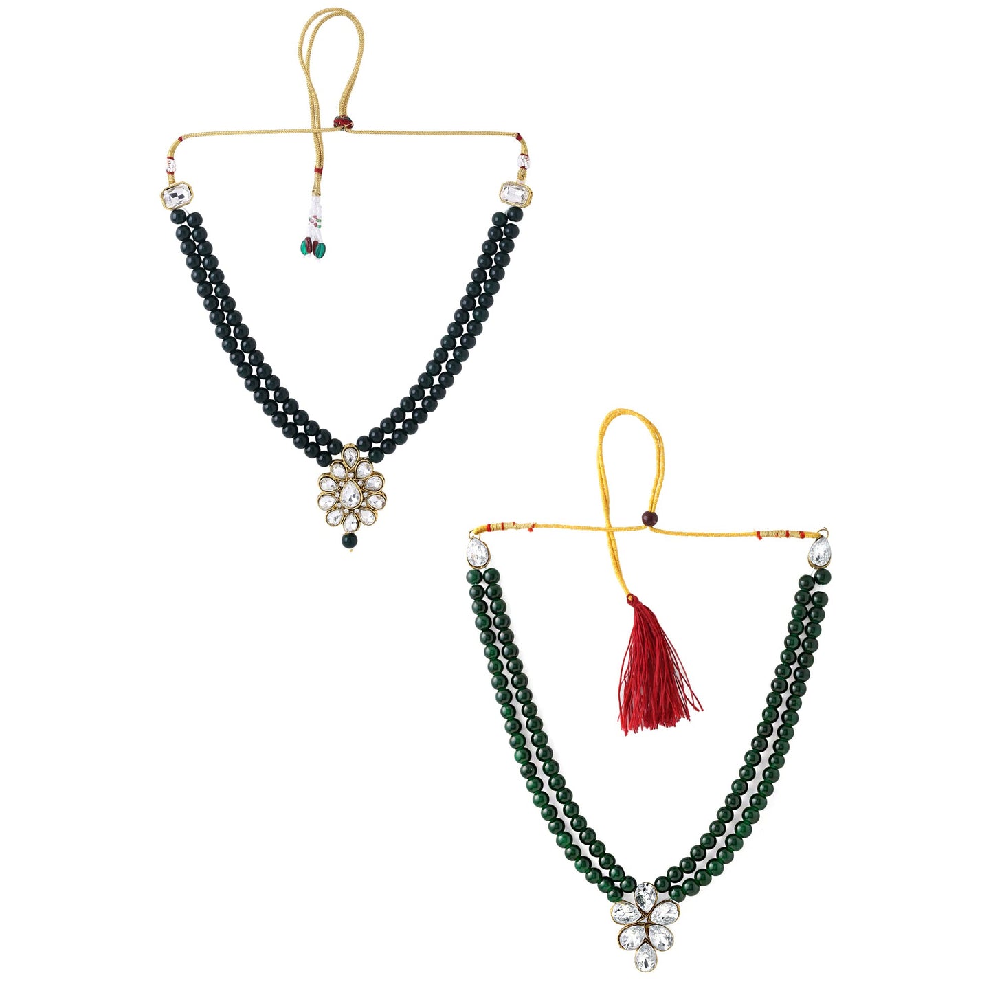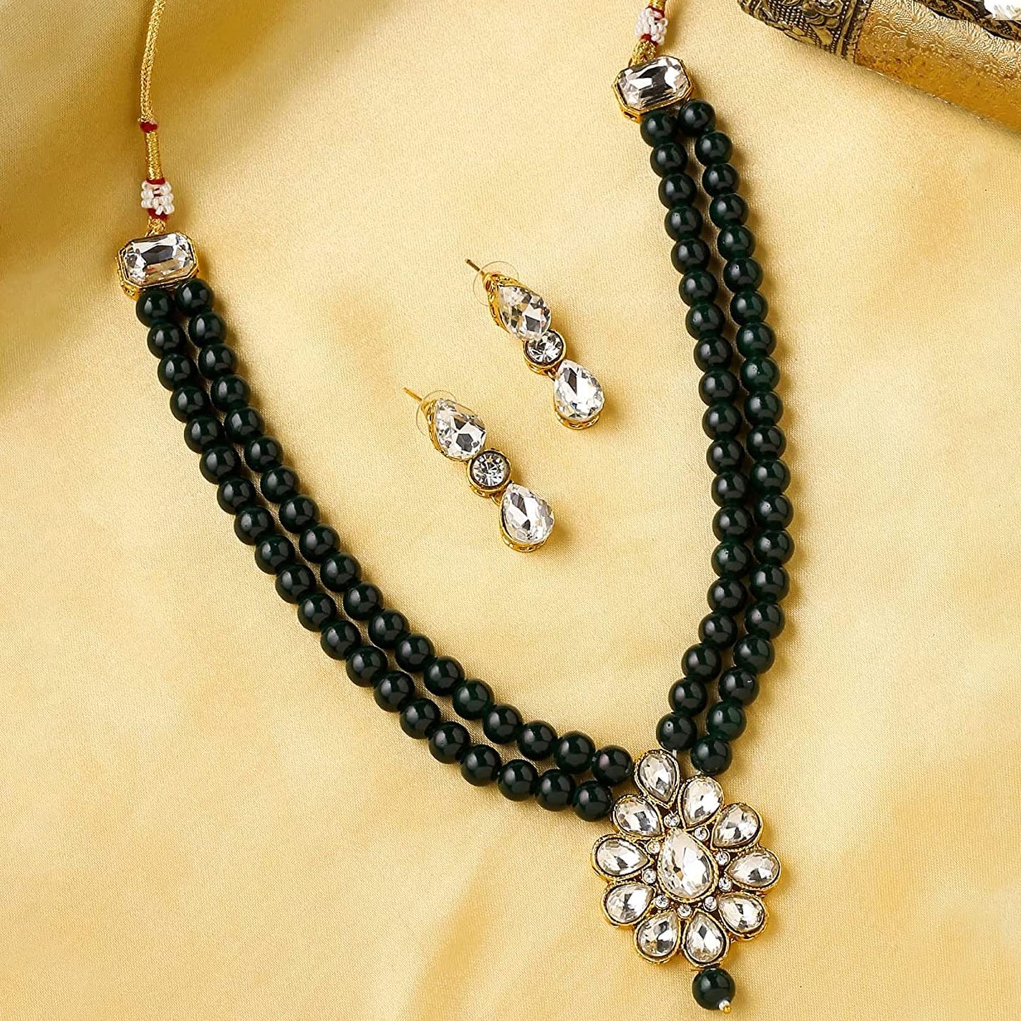 - Stunning Design: This necklace set showcases a stunning arrangement of green beads and intricately studded stones, making it perfect for any occasion.