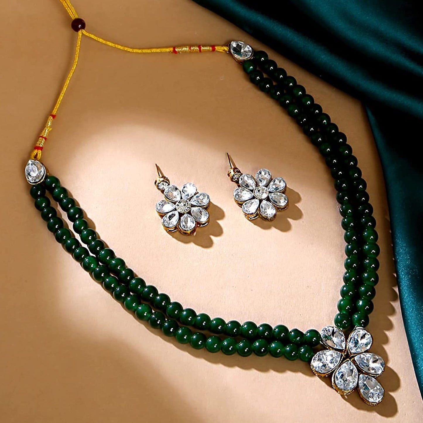 - Ethnic & gorgeous green beads jewellery sets for women Studded stone necklace set with earrings, Stunning and Preciously Suitable Looks for all Kinds of Occasions- Party / Festival /Wedding.Our Product is perfect for valentines Anniversary Birthday gift for Women,girlfriend,Wife.