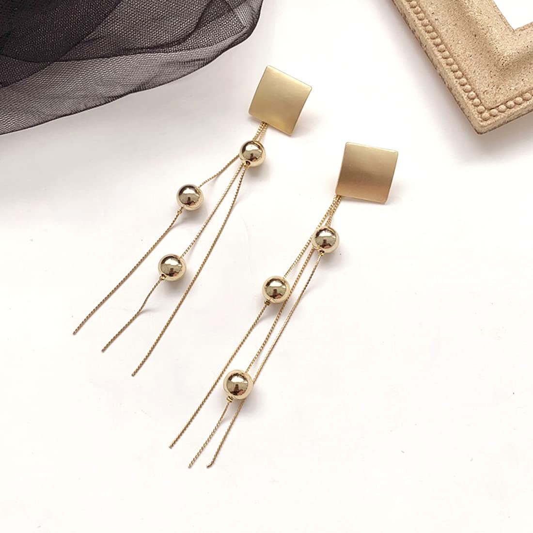 Earrings for Women and Girls Fashion Golden Dangler Earrings | Gold Plated Western Style Long Chain Dangler Earrings | Birthday Gift for Girls & Women Anniversary Gift for Wife