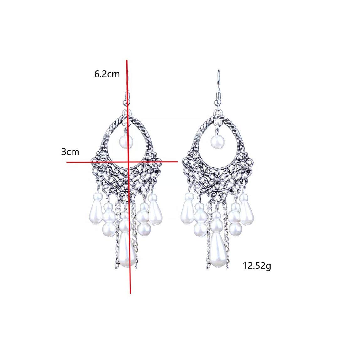 Step into the spotlight with our Latest Fusion Vintage Turkish Design Pearls Oxidized Silver Bohemian Long Tassel Dangle Earrings. These stunning earrings are not just accessories; they are a statement of style and sophistication.
