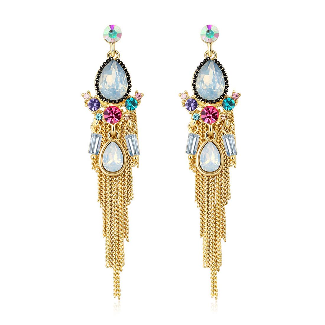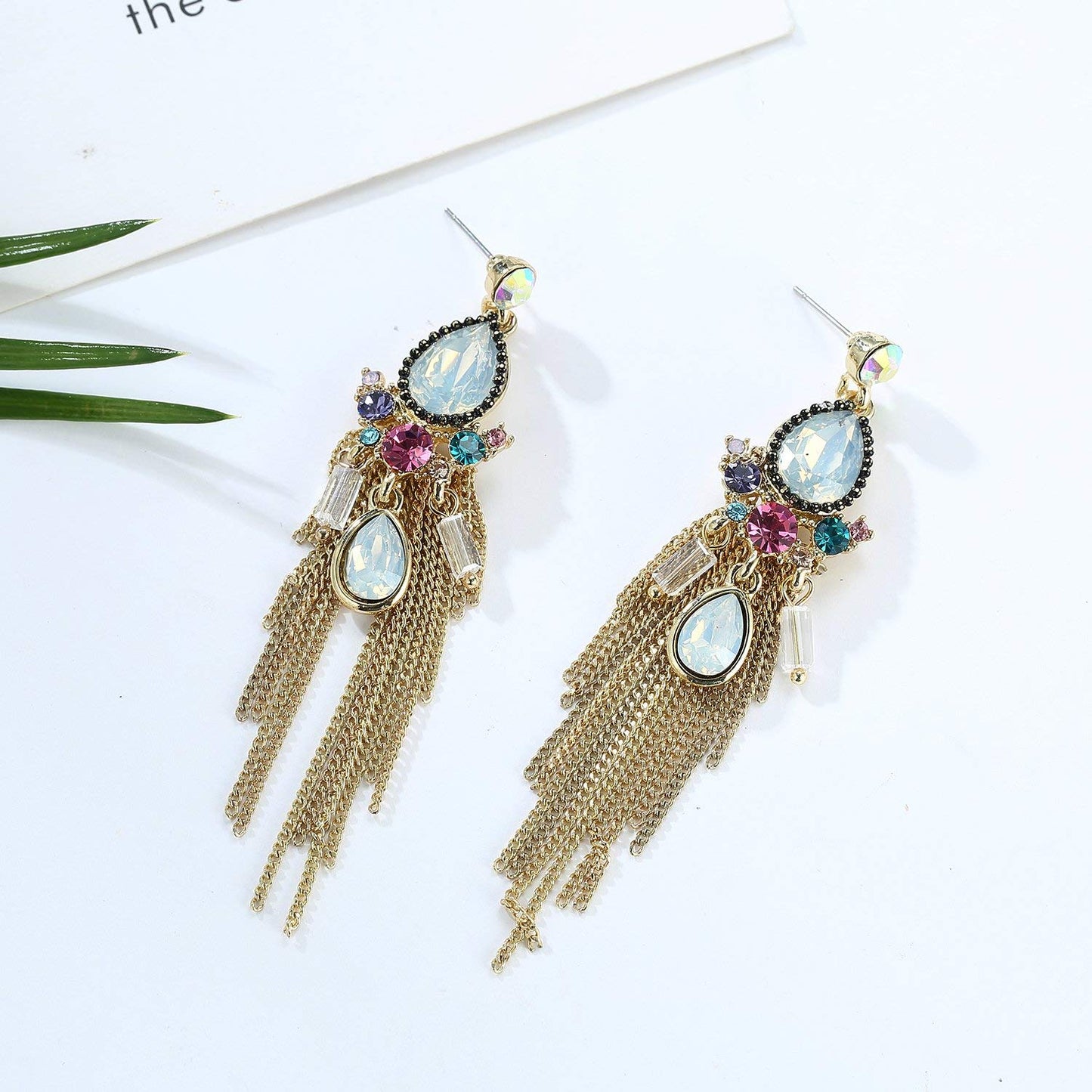 Latest Modal Multi Color Crystal Elements long Chain Tassel Earrings For Women