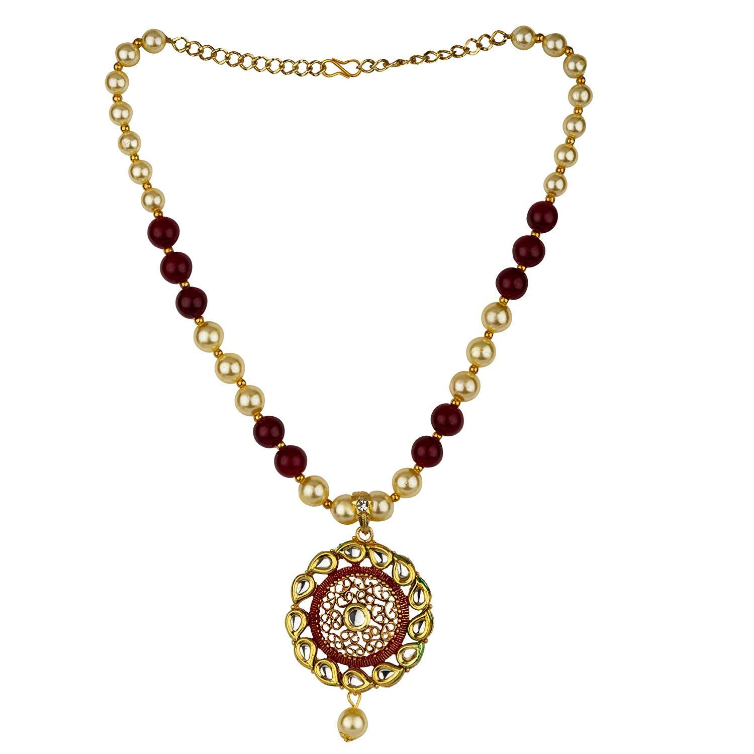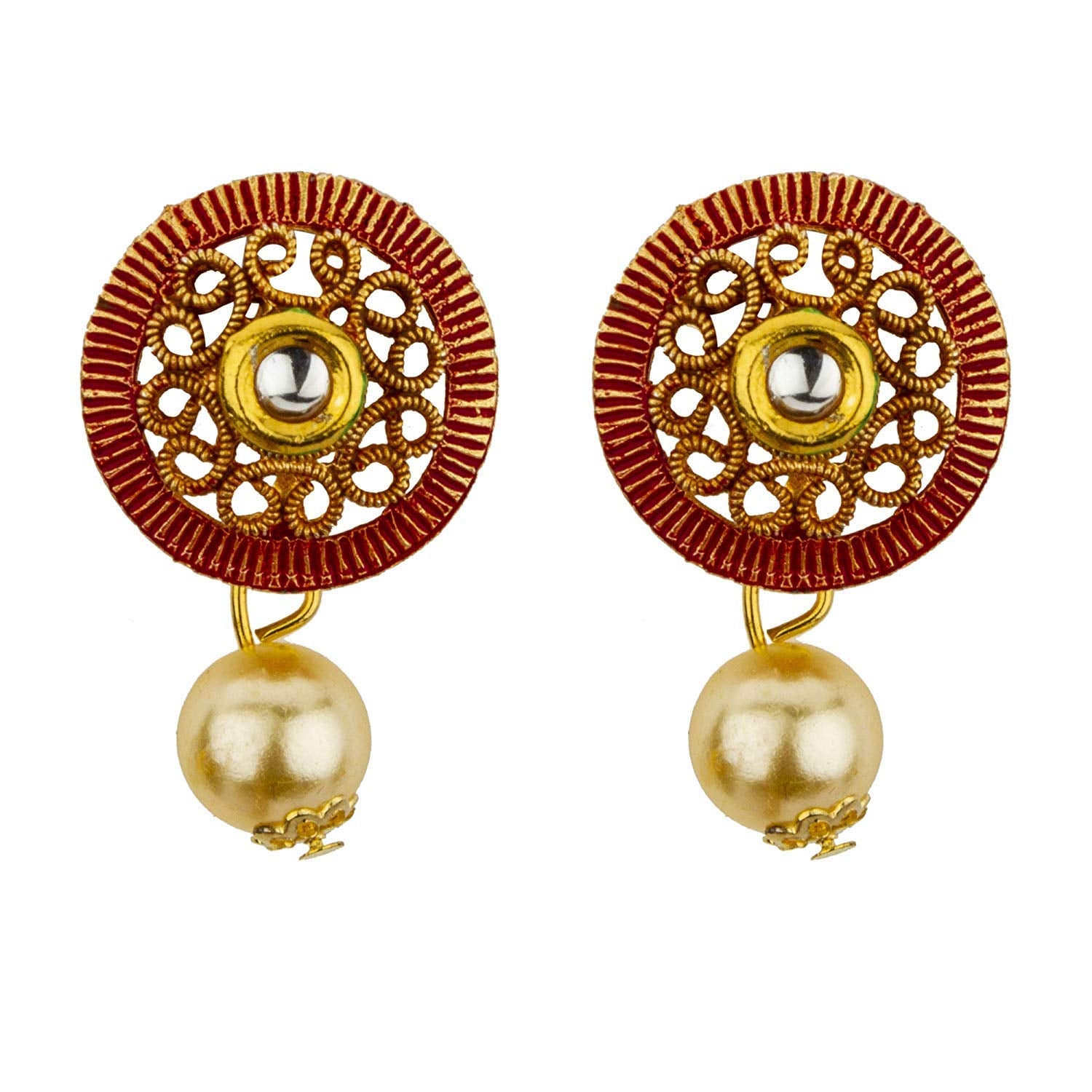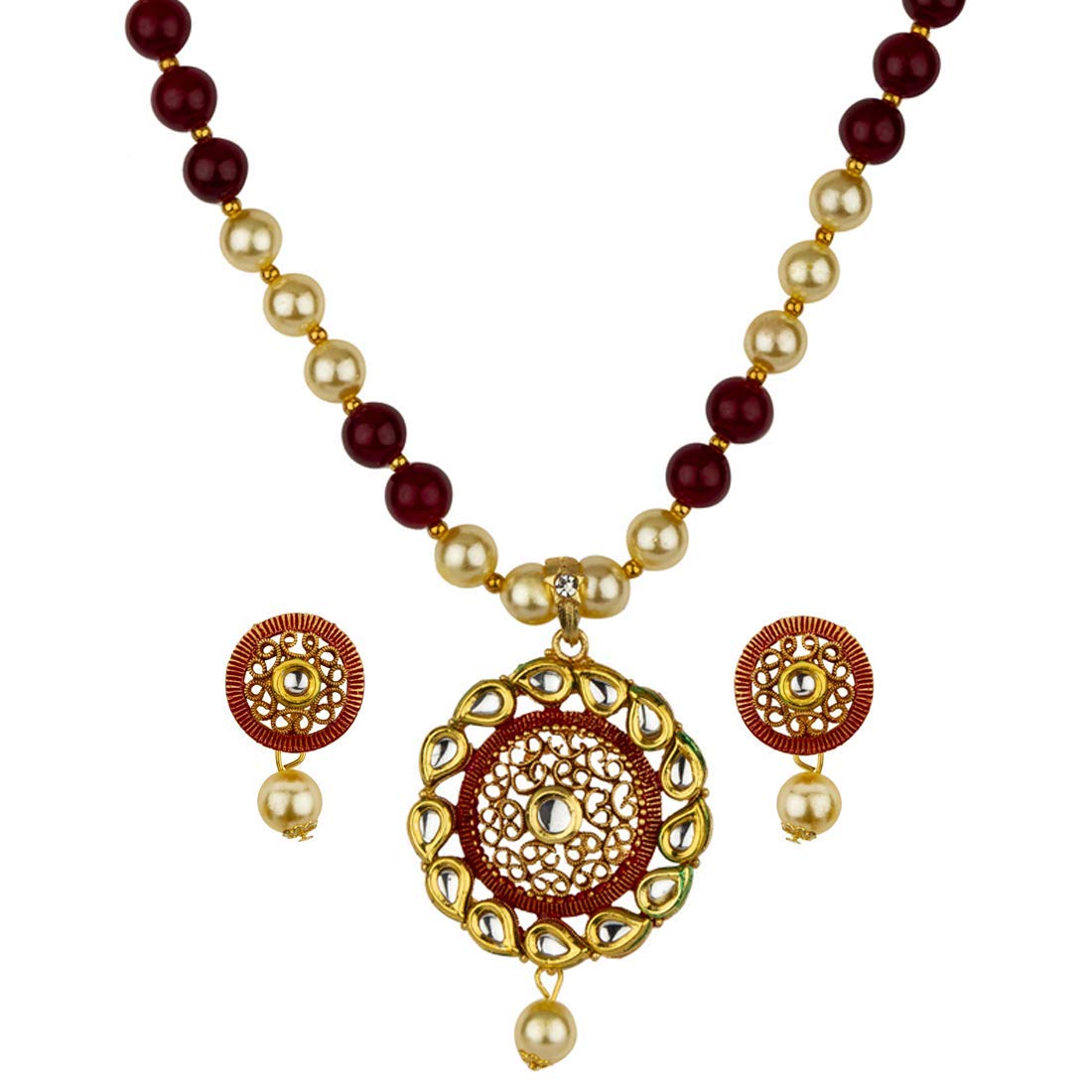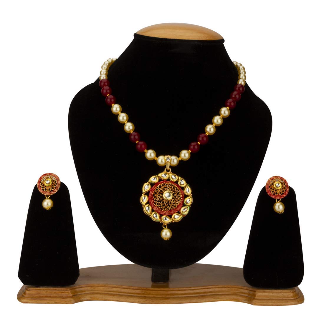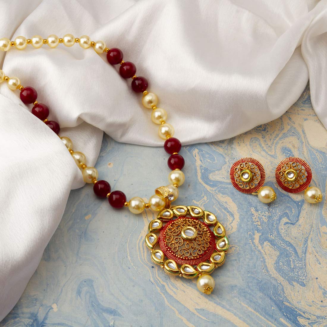 Yellow Chimes Latest Modern Pearl Kundan Traditional Adorable Necklace With Stud Drop Earrings For Women (Red)