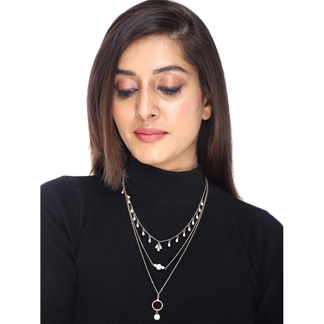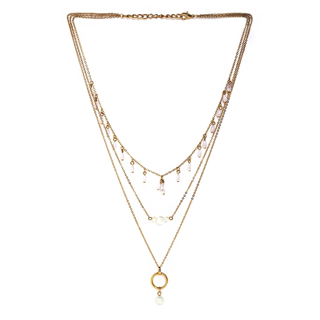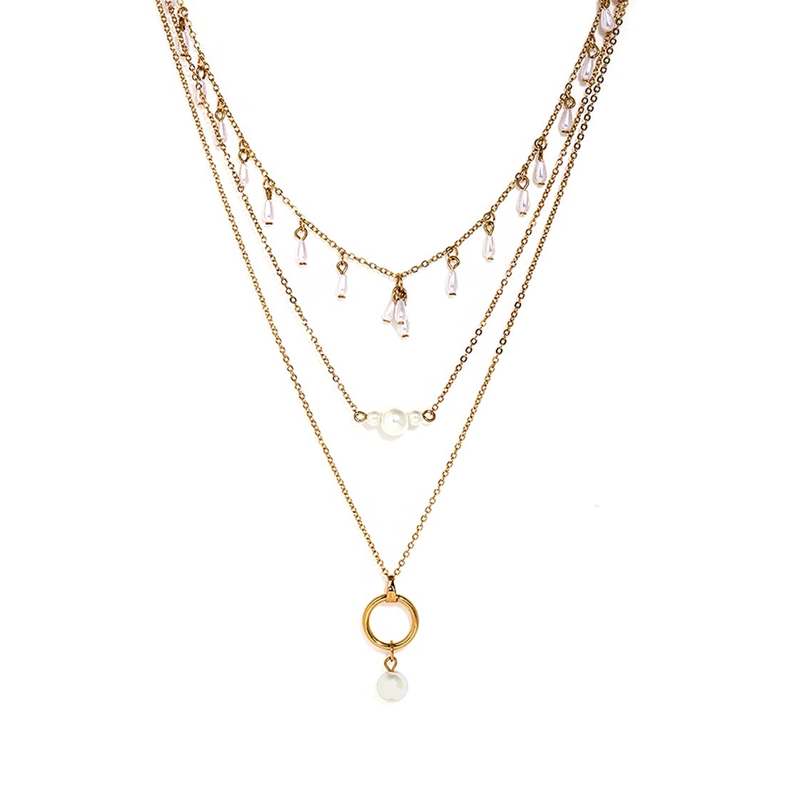 Yellow Chimes Layered Necklace for Women Gold Plated Charming MultiLayered White Pearl Drop Chain Necklace for Women and Girls