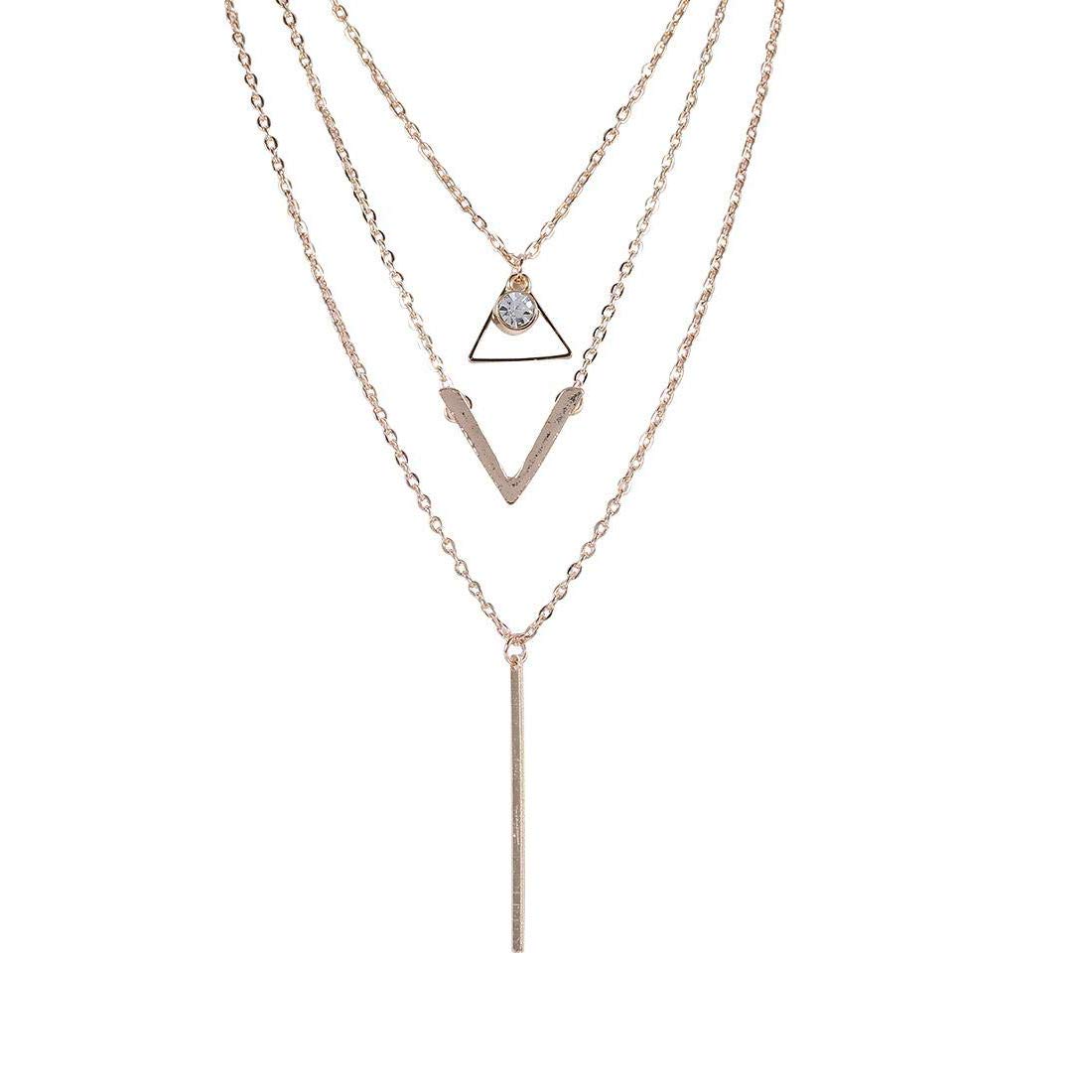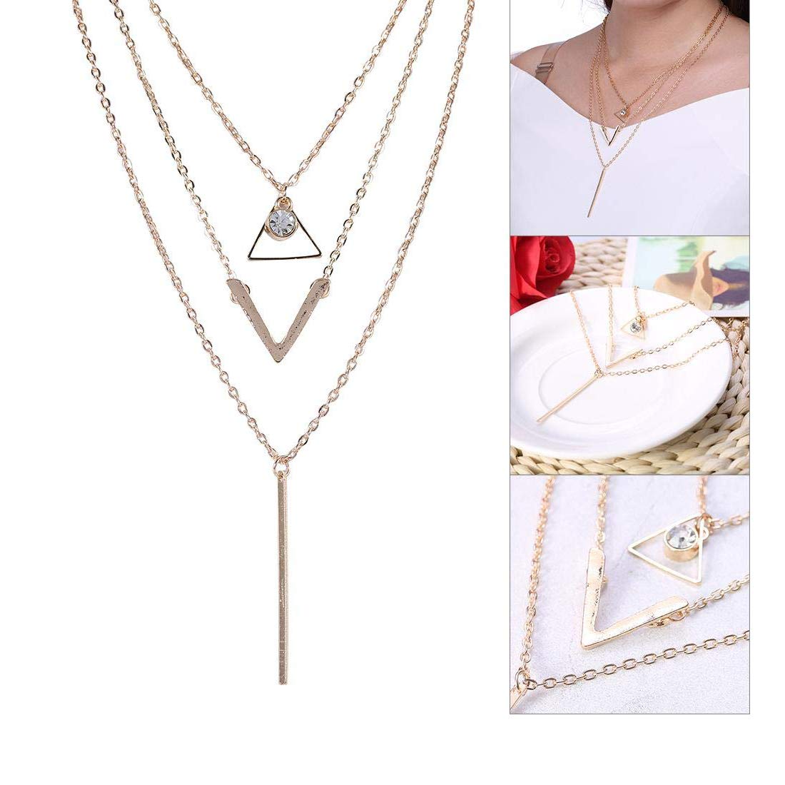 Layered Necklace for Women Multi Layered Geometric Long Chain Necklace Crystal Gold Plated Choker Necklace for Women And Girl's