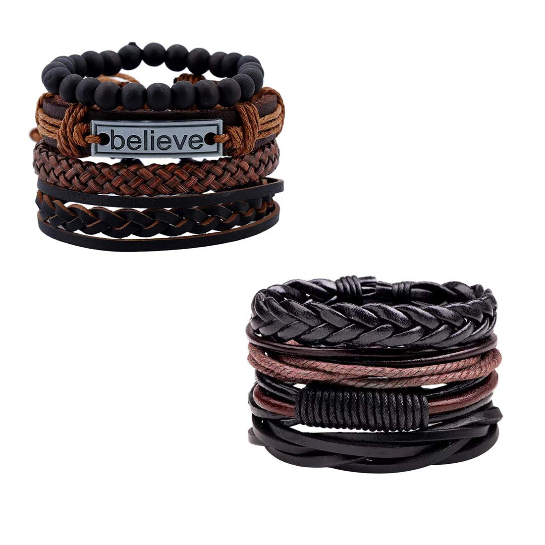 Yellow Chimes Leather Bracelets for Men Multi PCs Combo Leather Wraps Casual Ware Latest Leather Bracelets for Men and Women Multiple Combo PCs Latest Leather bracelet Stylish And Trendy Wrap Bracelets from Yellow Chimes. Wrap Style leather bracelets are the most versatile pieces to work with and look great when teamed with watches. Casual Wear FashionWrap For the fashionable classy Casual looks, this Leather adjustable Charm braclet will always be there to match with any style wear- formal / casual. Produced under Quality Control; One by One Checking; Focus on Detail Processing. Top Quality/ Latest Trend Design/Anty-Allergy .Beautiful Looks at One Glance- with Intricate High Polish creates Glamorous Reflections and adds Luxurious Looks Size : Free Size , QUALITY - Top Quality/Never Fade/Brand New Design/Anty-Allegy GIFT FOR Unisex! - Ideal Valentine, Birthday, Anniversary gift for someone you LOVE. With our packaging Box, you do not need to opt-in for any additional gift packaging. The product comes in a beautiful Elegant Ready-to-Gift Box.