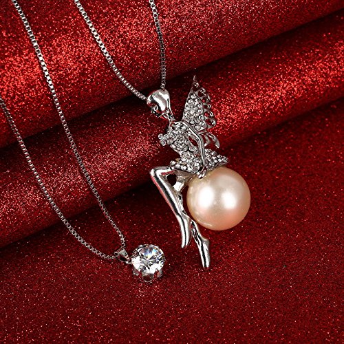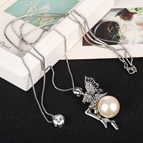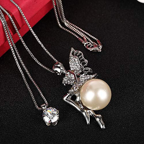 - BEAUTY- This Pearl Angel Crystal necklace is a long Chain Multilayer which is perfect for Modern style Latest Fashion looks. The Necklace is Silver Color Rhodium Plated plated which is giving a nice combination overall.