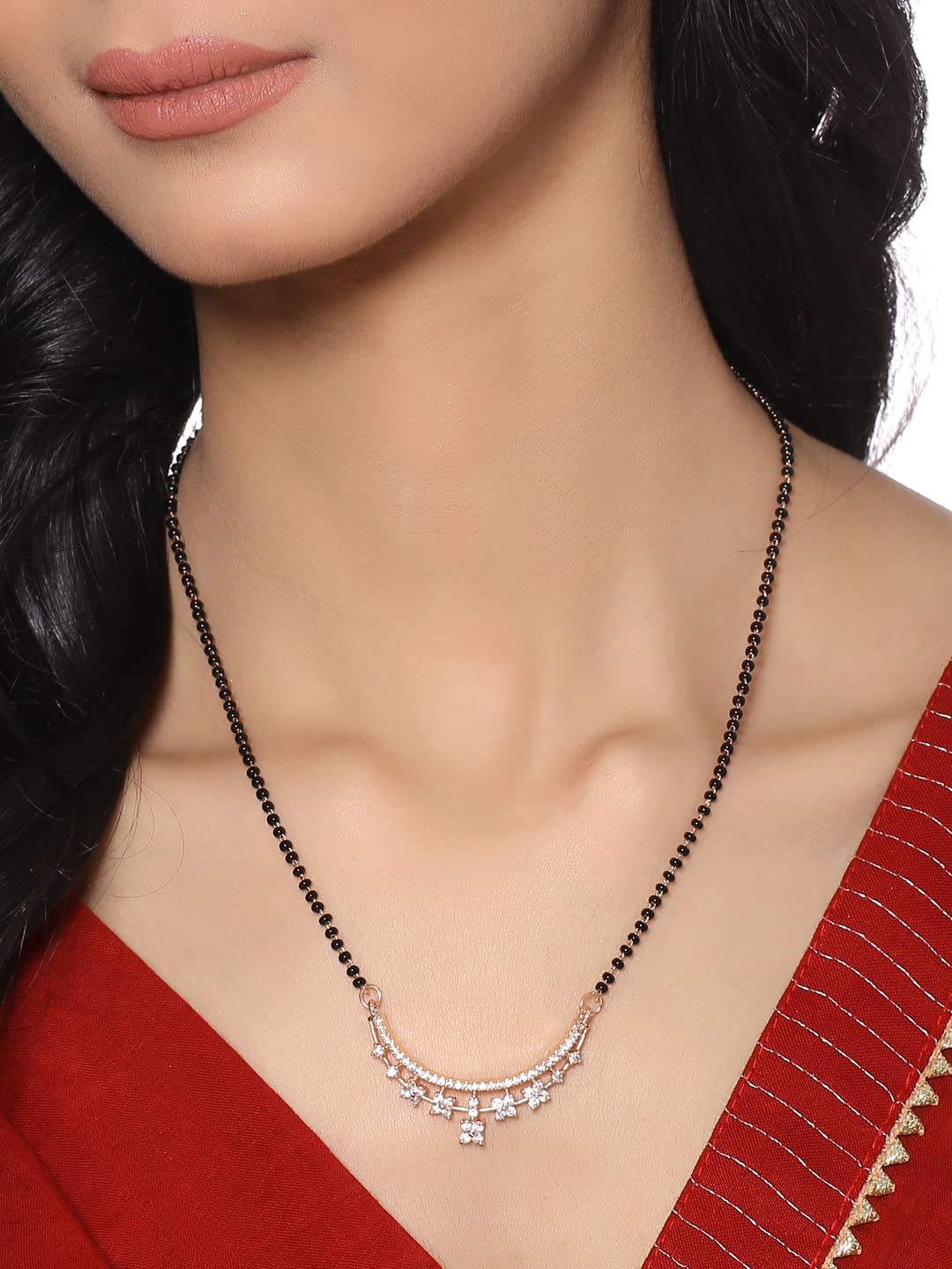 Yellow Chimes Mangalsutra for Women AD/American Diamond Studded Black Beads Mangalsutra for Women and Girls (ADMS 3)