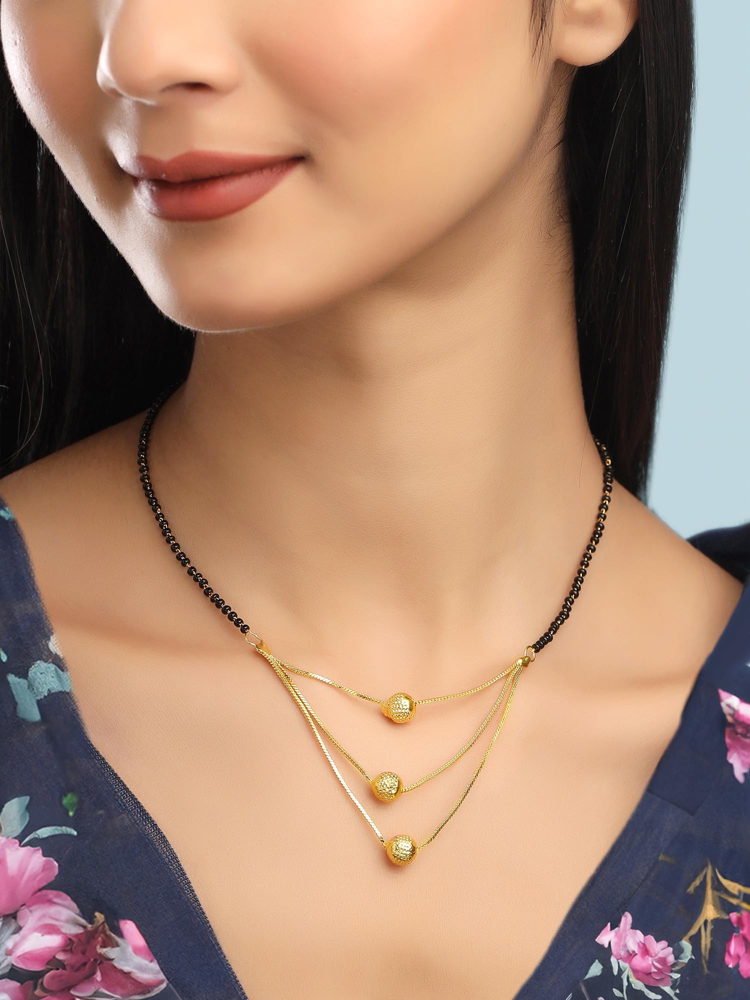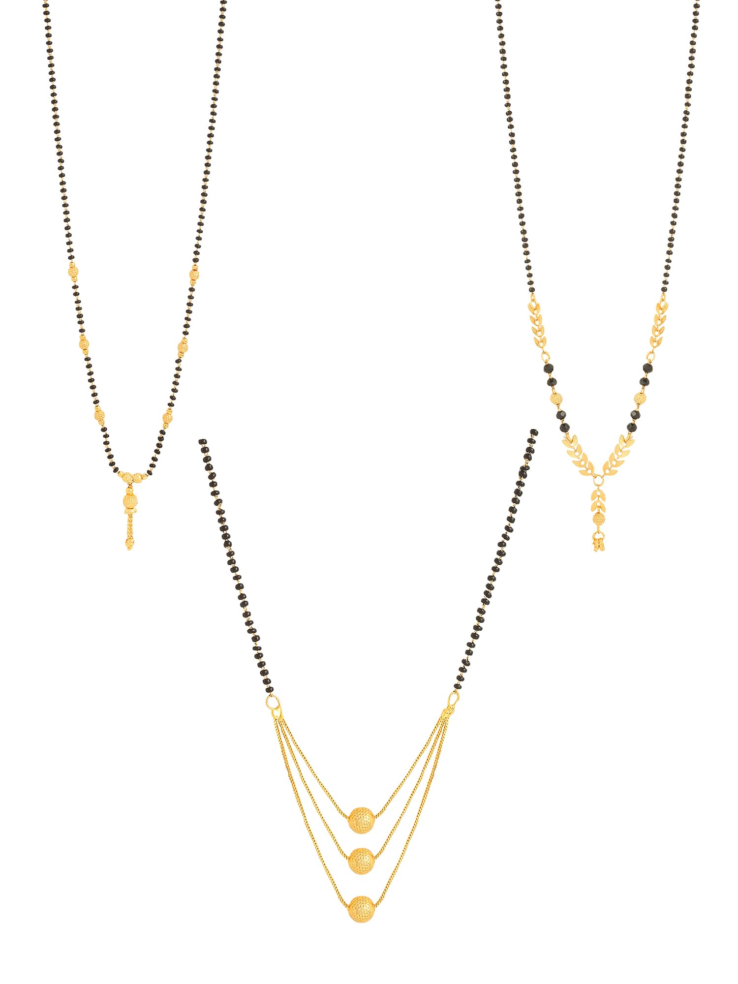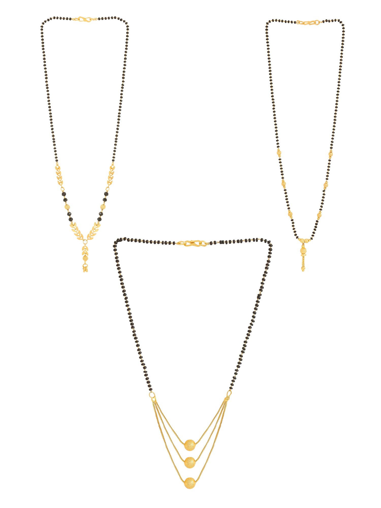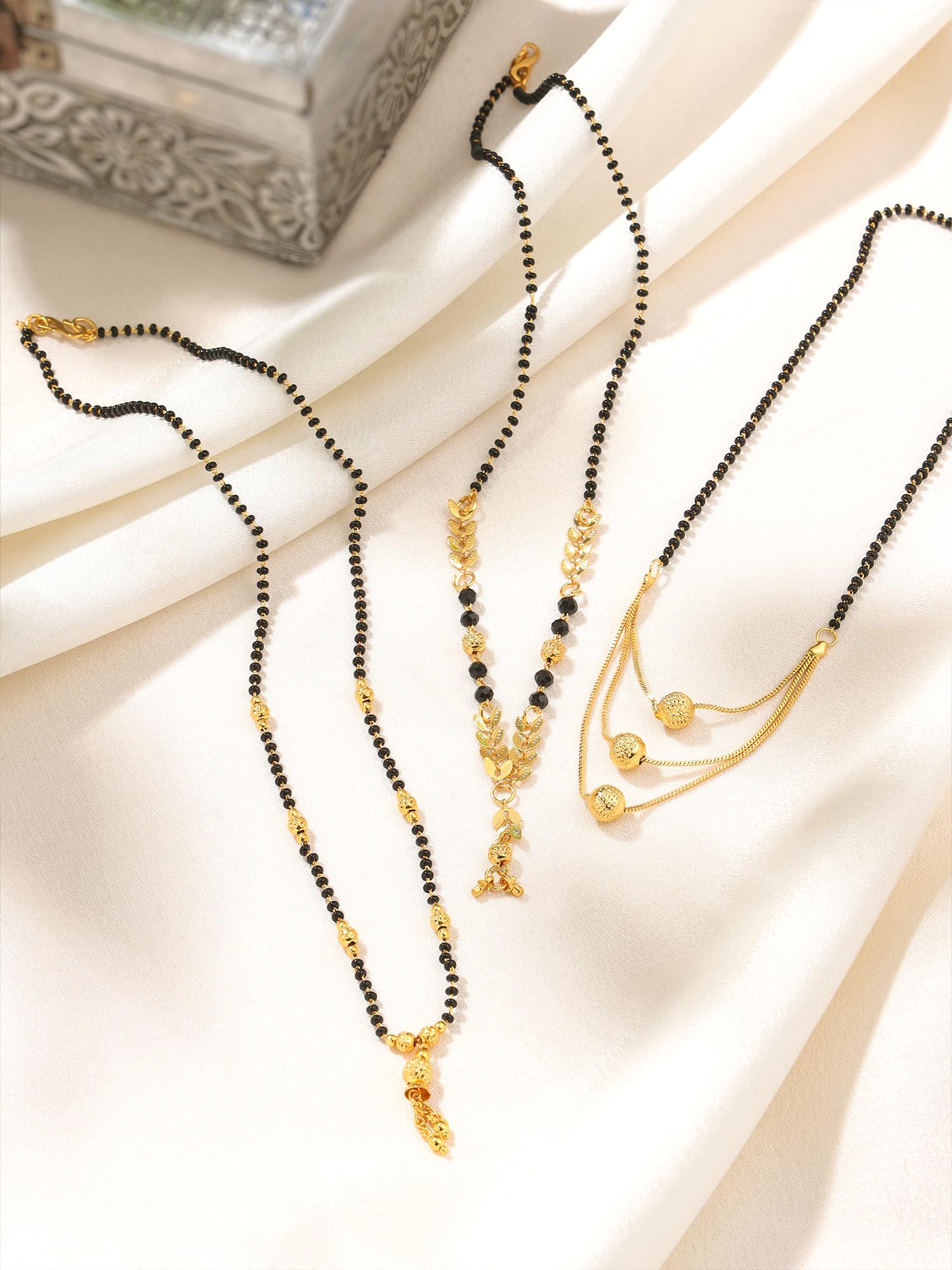- Style: Ethnic & Stylish Looks, Combo of 3 pcs Traditional Gold Plated Black Beads Mangalsutra Pendant Necklace Stunning and Preciously Suitable Looks for all Kinds of Occasions- Party / Festival / Daily.