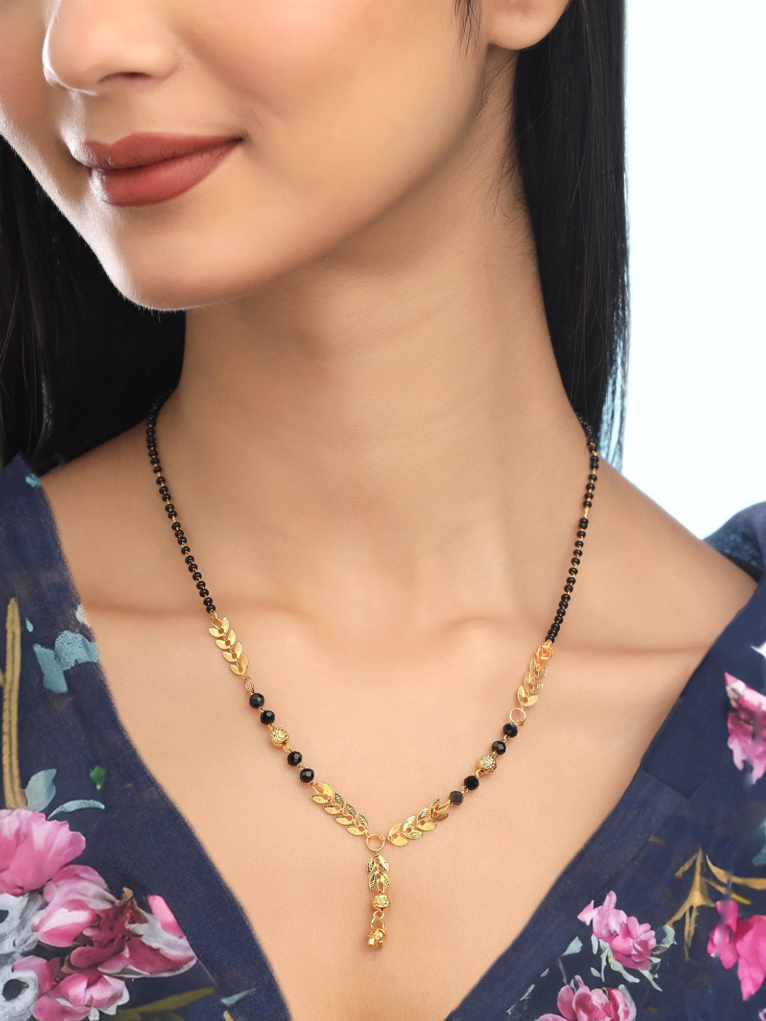 - Beauty- This Traditional Gold Plated Black Beads Mangalsutra Pendant Necklace will complement any Traditional or Modern attire. Ethnic Traditional Gold Plated and Black Beaded Single Chain Mangalsutra complements all outfits & Can be worn on any occasion.