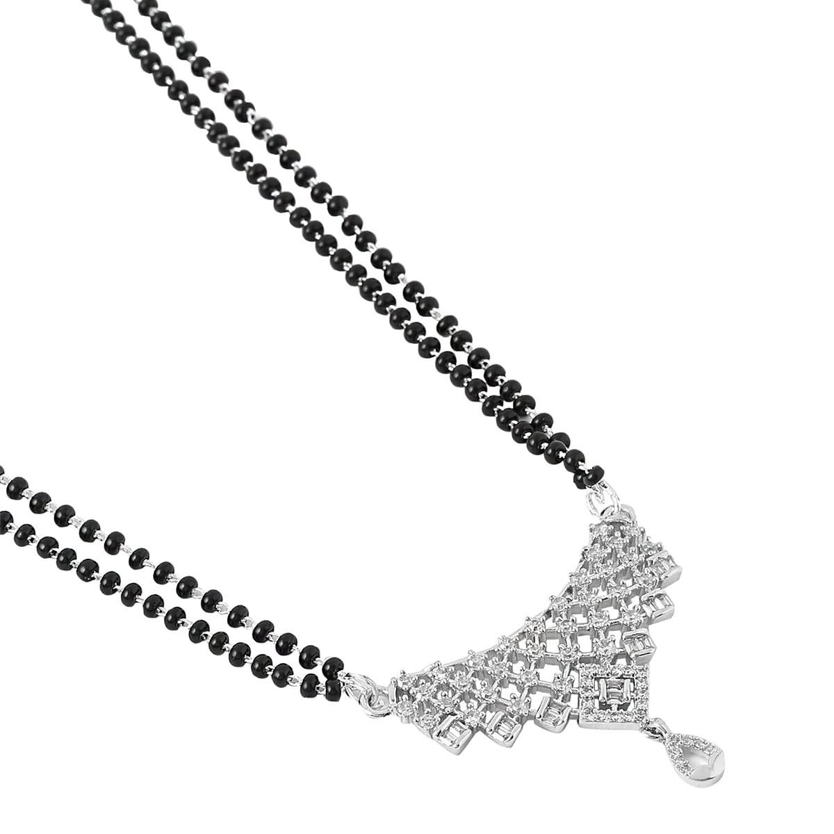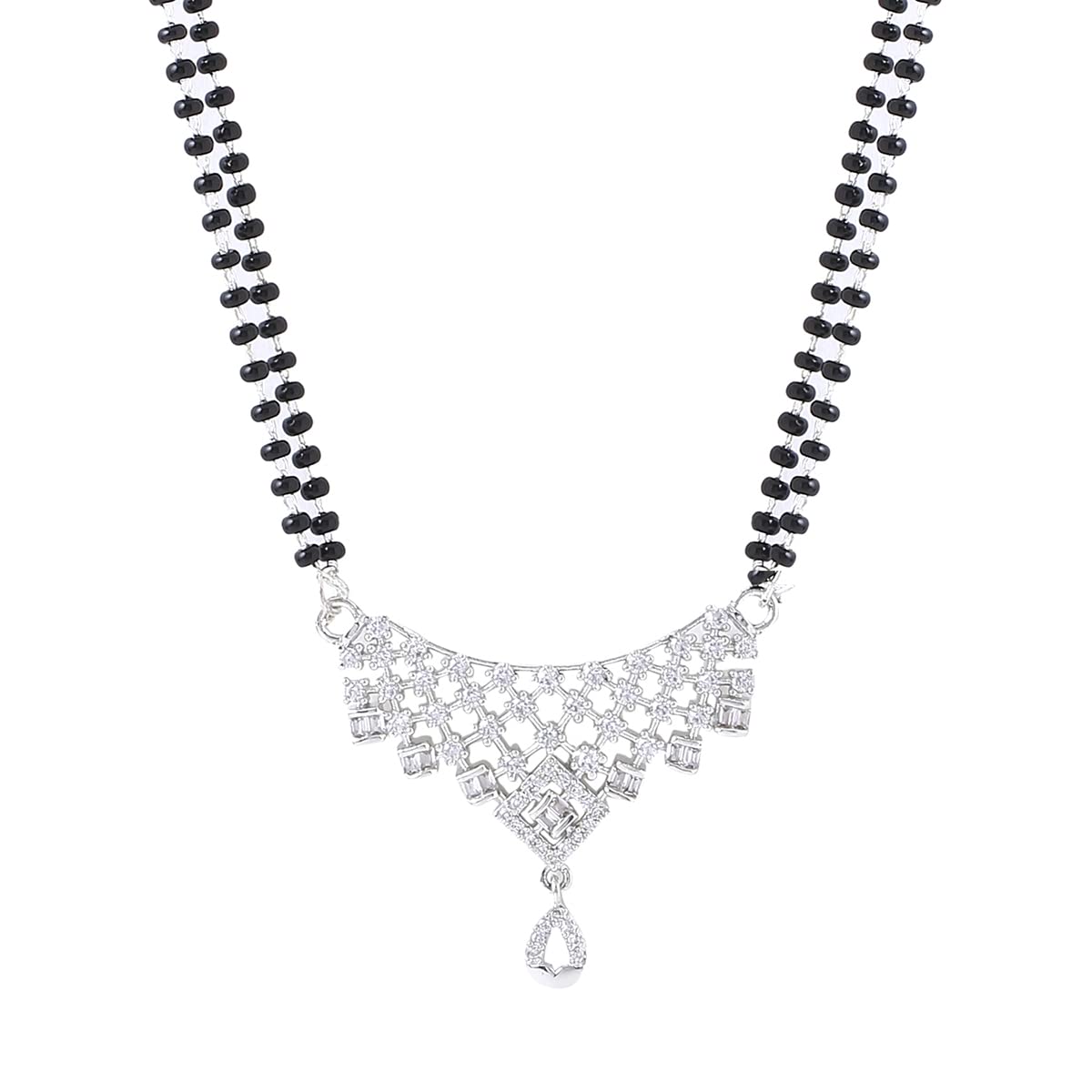 Mangalsutra for Women Silver Plated AD/American Diamond Crystal Studded Traditional Designed Mangalsutra for Women and Girls