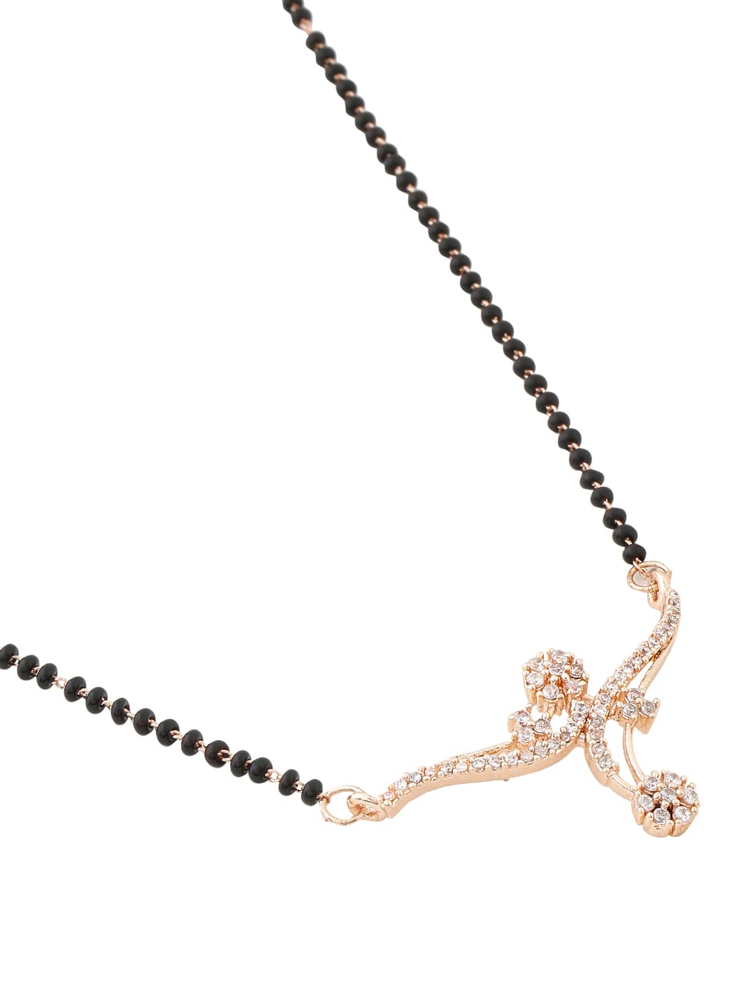 - Quality -This Mangalsutra design is delicate and feminine and the luster of AD is unmatched. The yellow Gold polish gives it the plush Gold Jewellery Statement looks.. Brass Metal for durability.