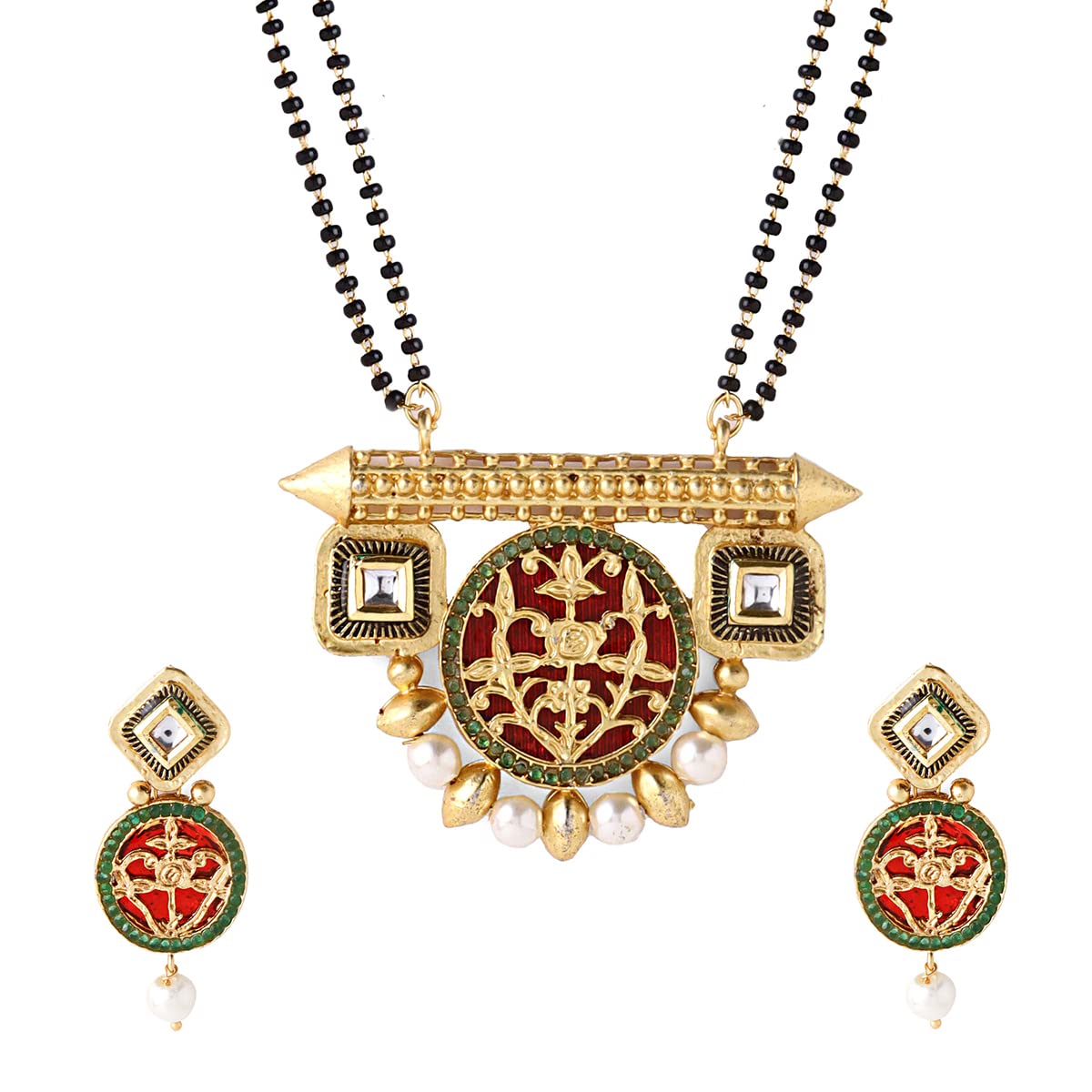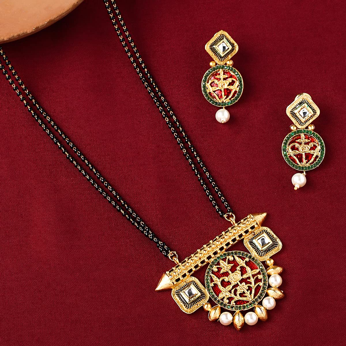 - This Gold Plated Black Beads Kundan Mangalsutra comes with a unique design that suits any of your outfit. Our Product is perfect for valentines Anniversary Birthday gift for Women,girlfriend,Wife.