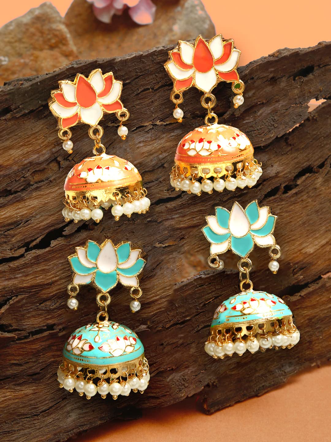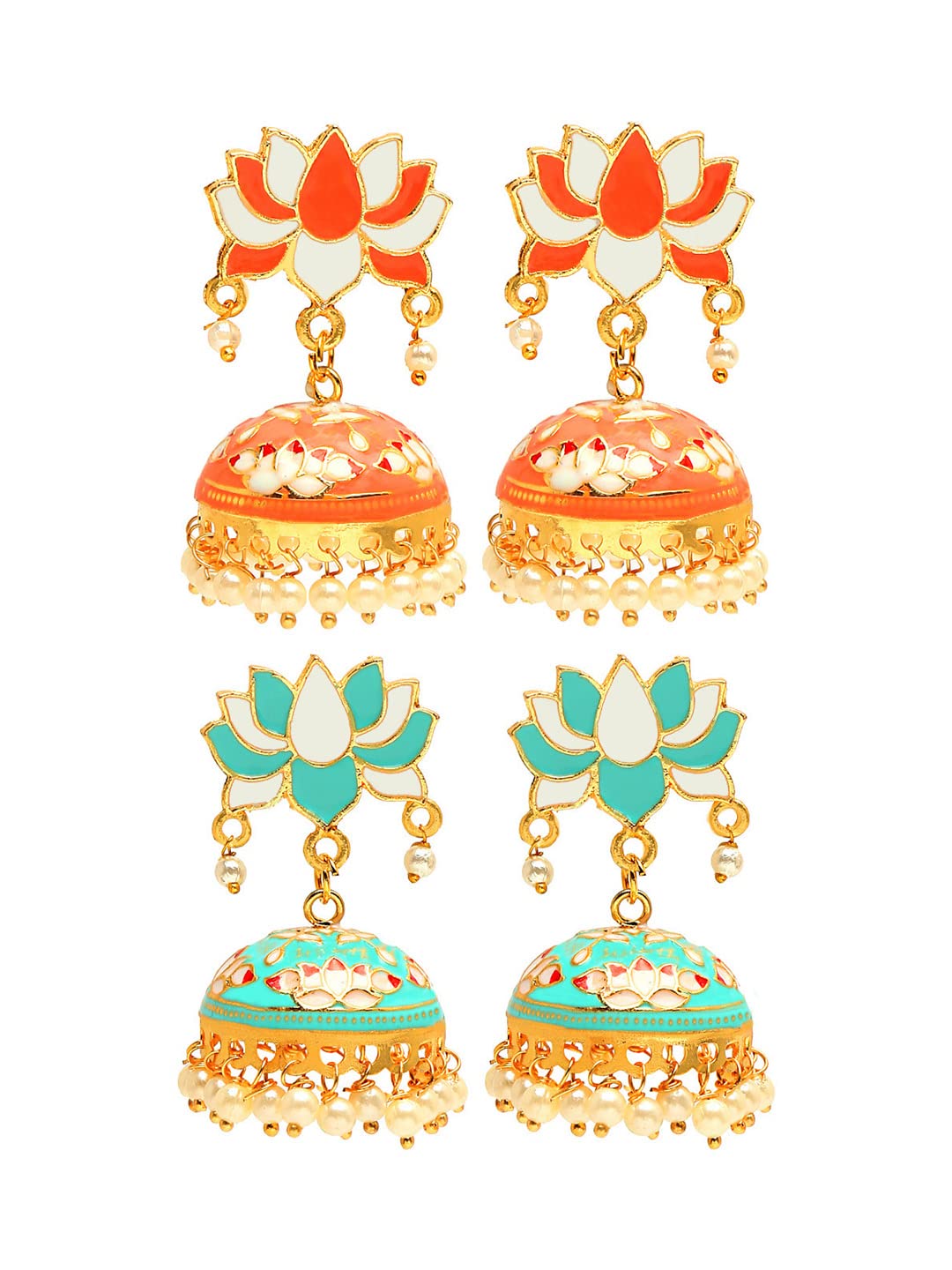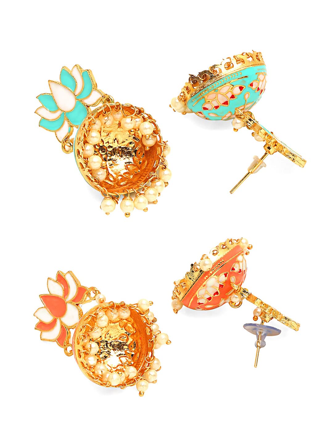 Yellow Chimes Meenakari Earrings for women Meenakari Handcrafted Jaipur Rajasthani Style Traditional Gold Plated Jhumka/Jhumki Earrings for Women and Girls. (ME 5)