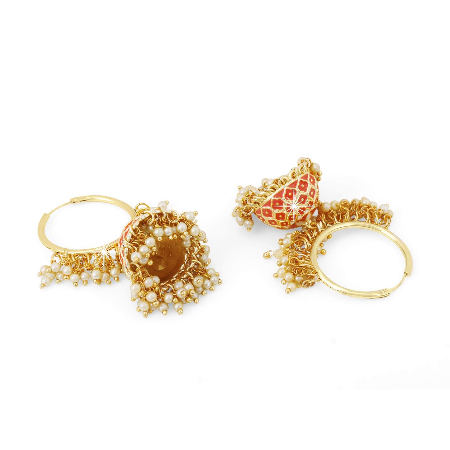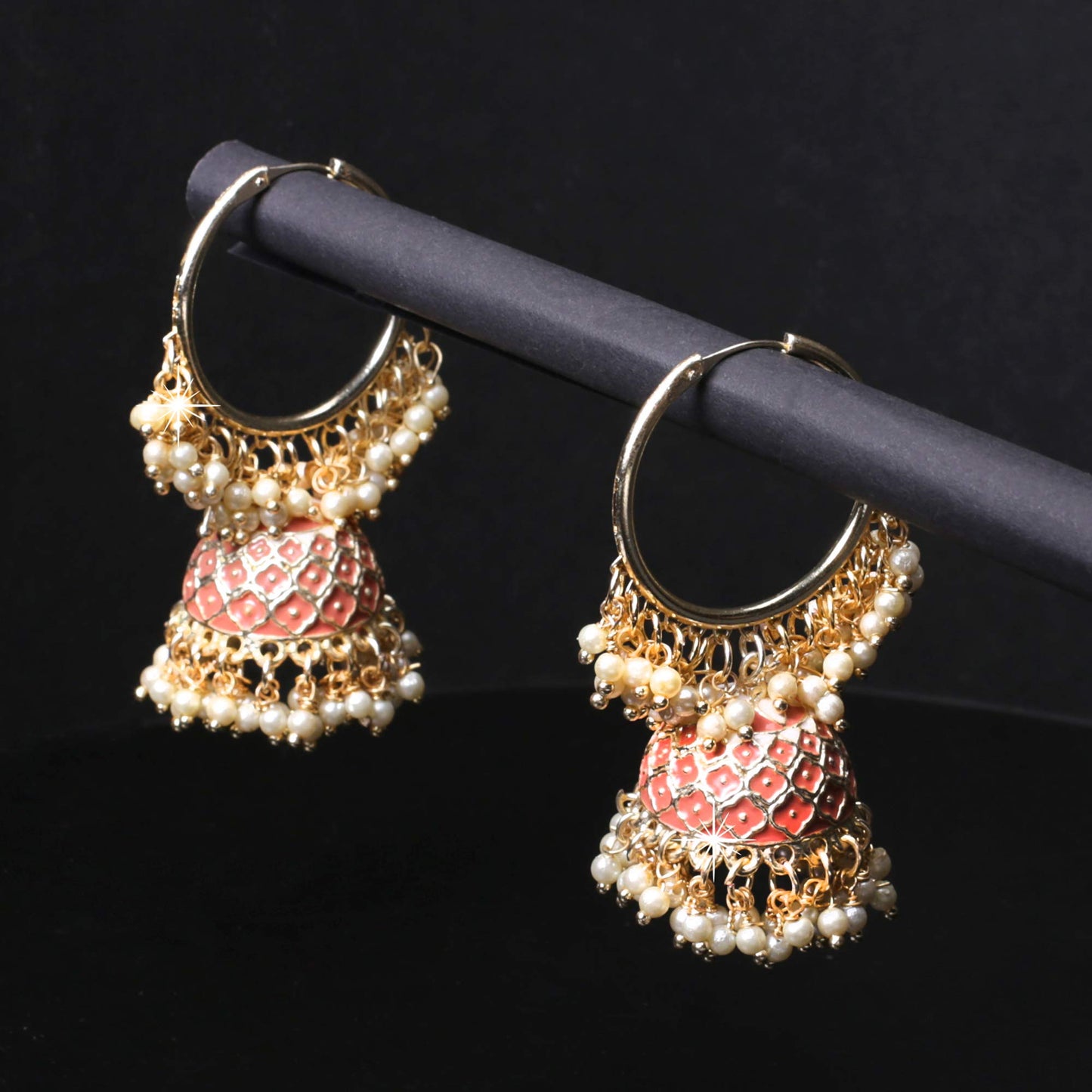 Meenakari Gold toned Traditional Peach Jhumka Hoop Earrings for Women and Girls (Peach)