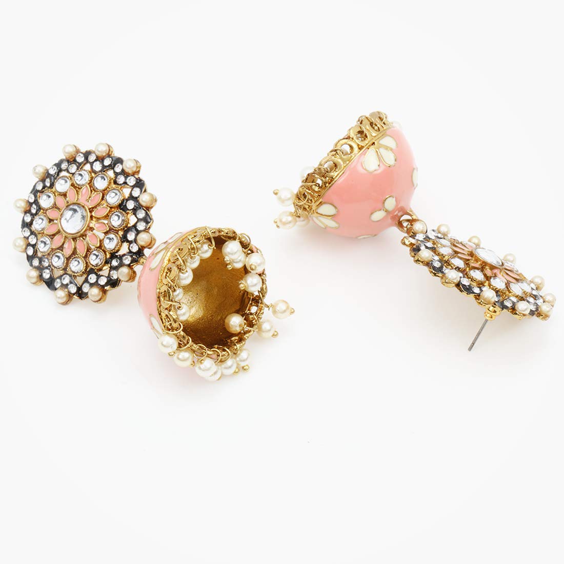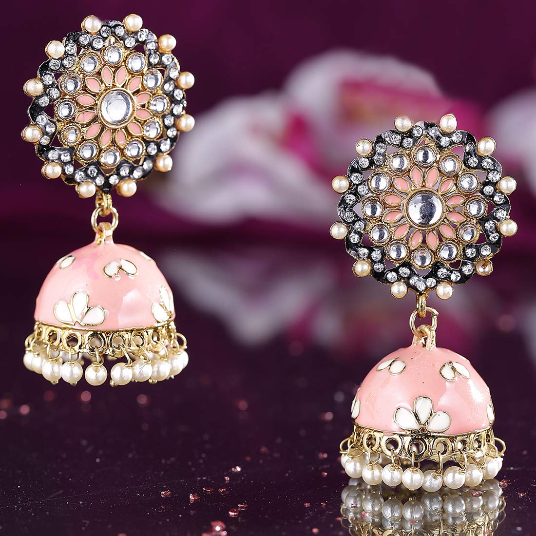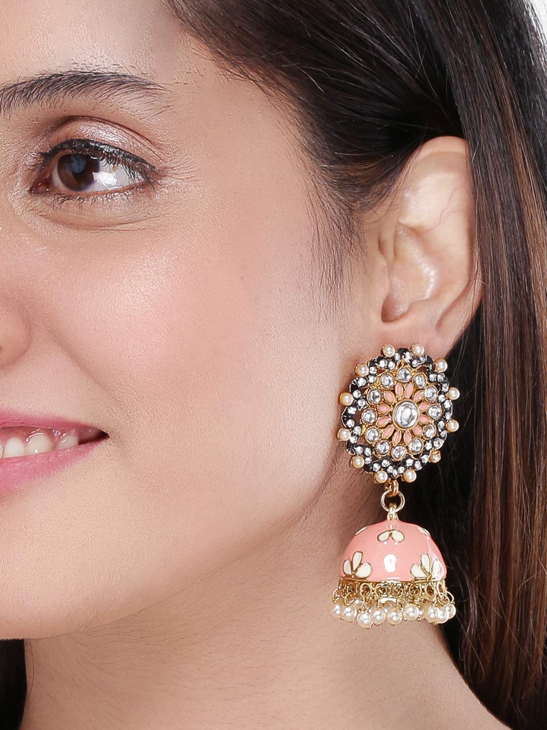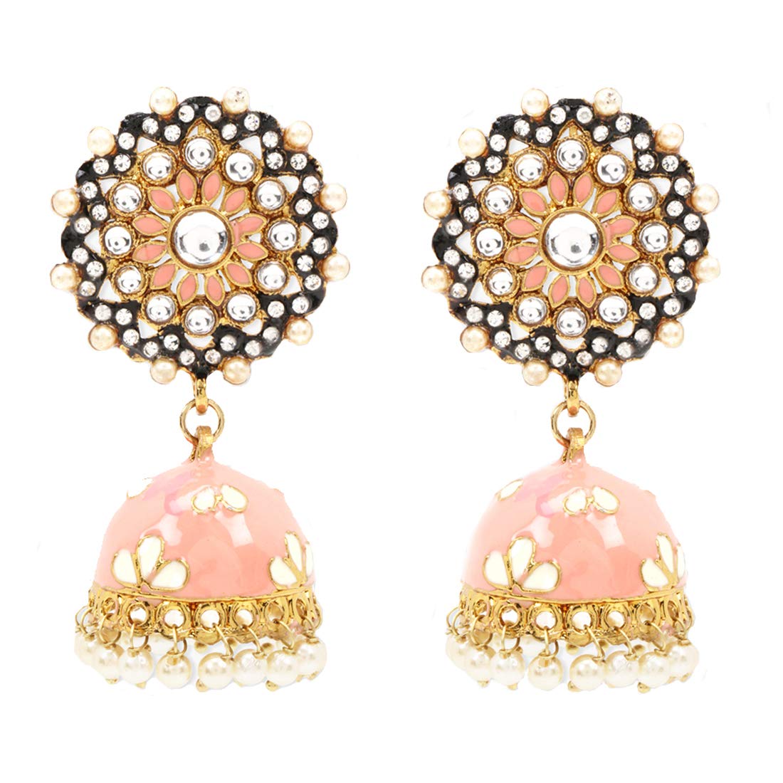 Meenakari Jhumka Earrings Handcrafted Gold Toned Traditional Yellow Jhumka/Jhumki Earrings for Women & Girls (Peach)
