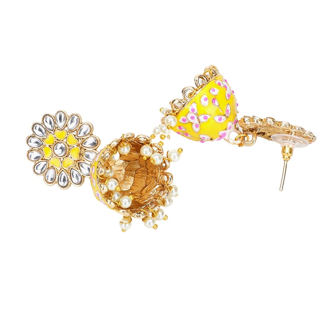 Yellow Chimes Meenakari Jhumka Earrings for Women Gold Plated Yellow Meenakari Flower Pearl Jhumka Earrings for Women and Girls