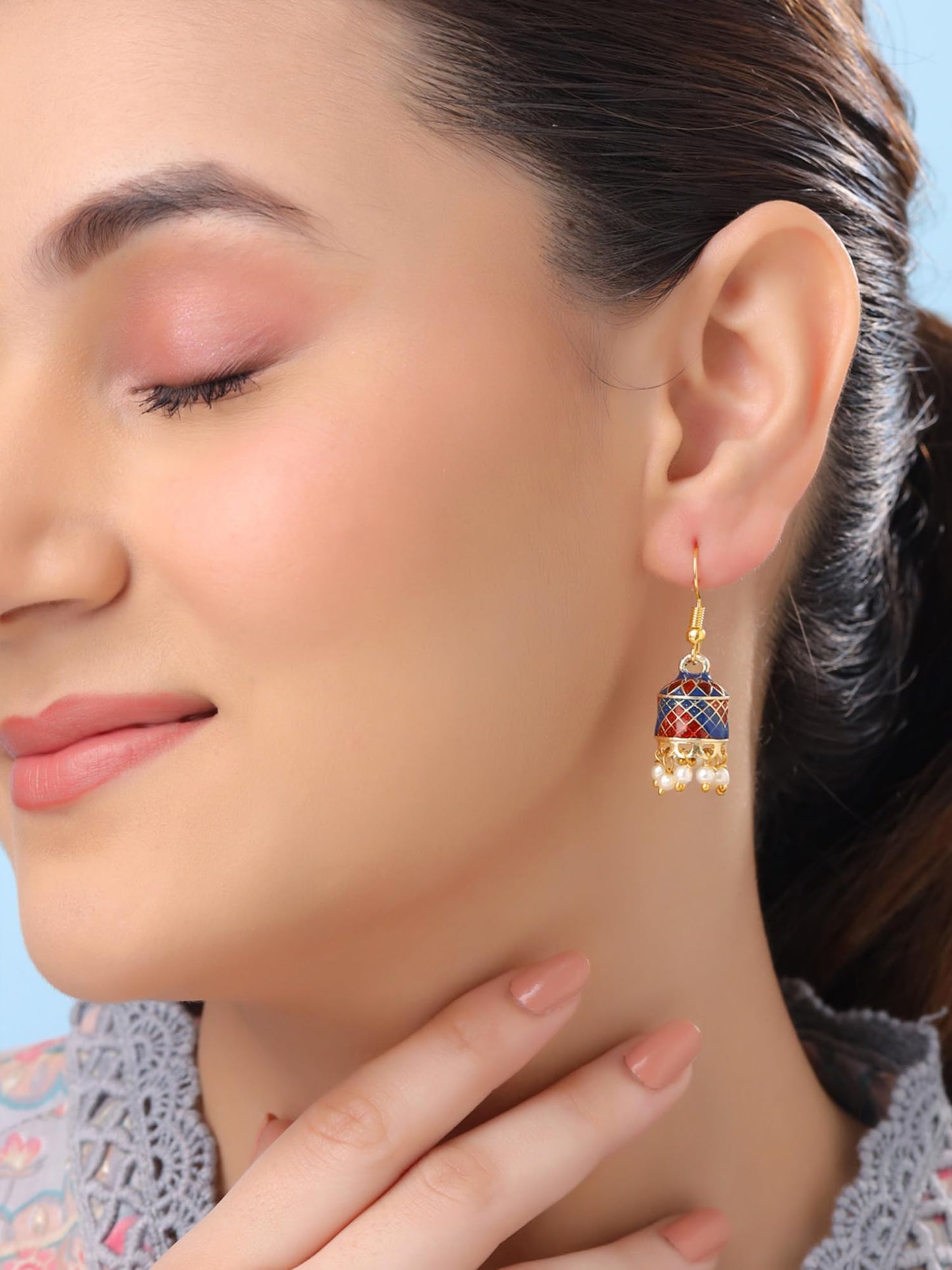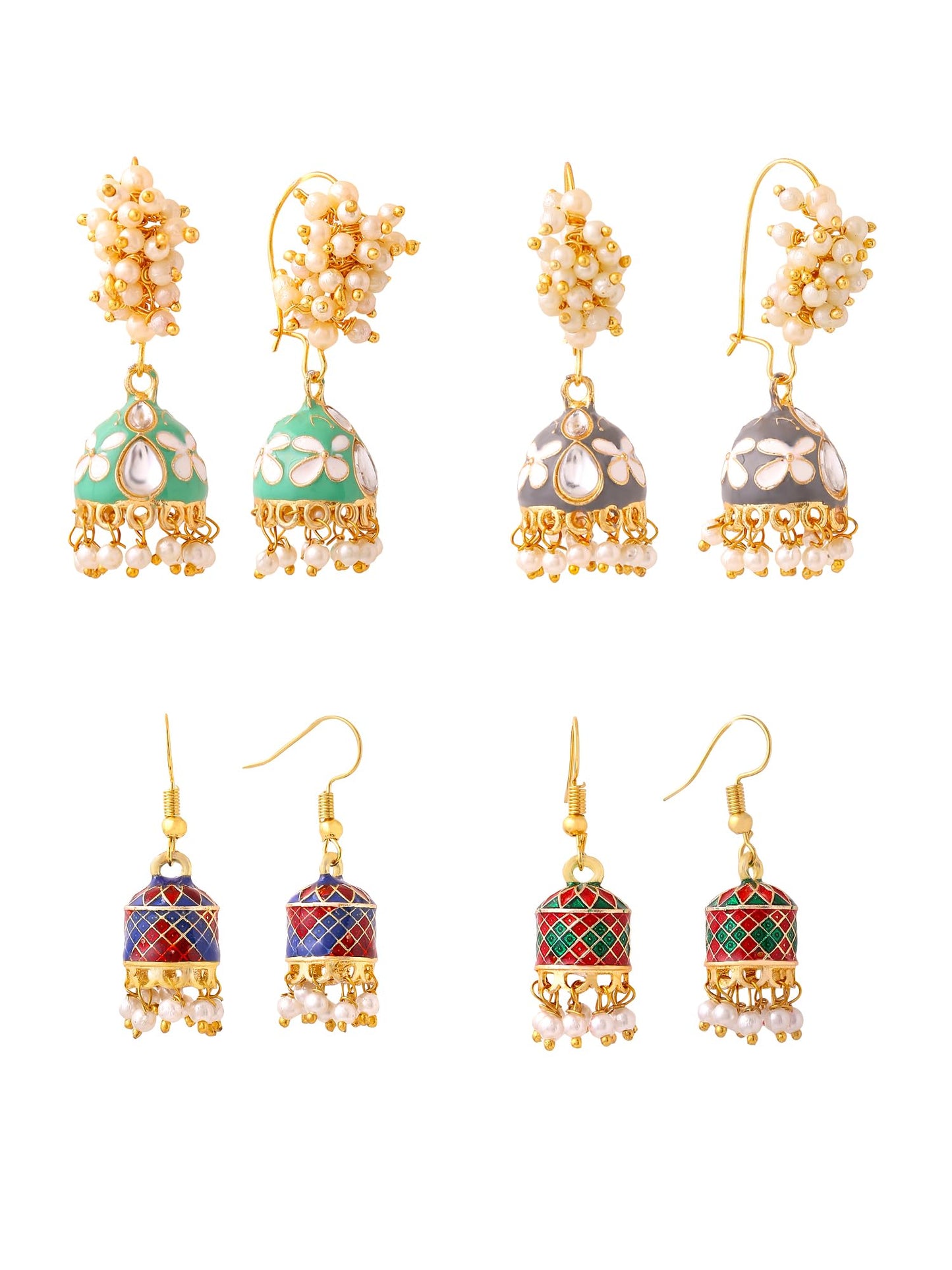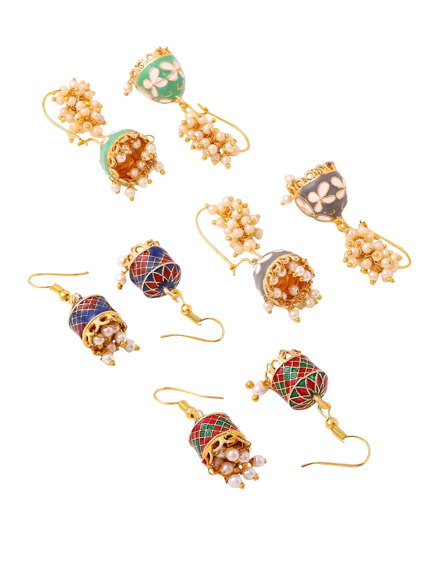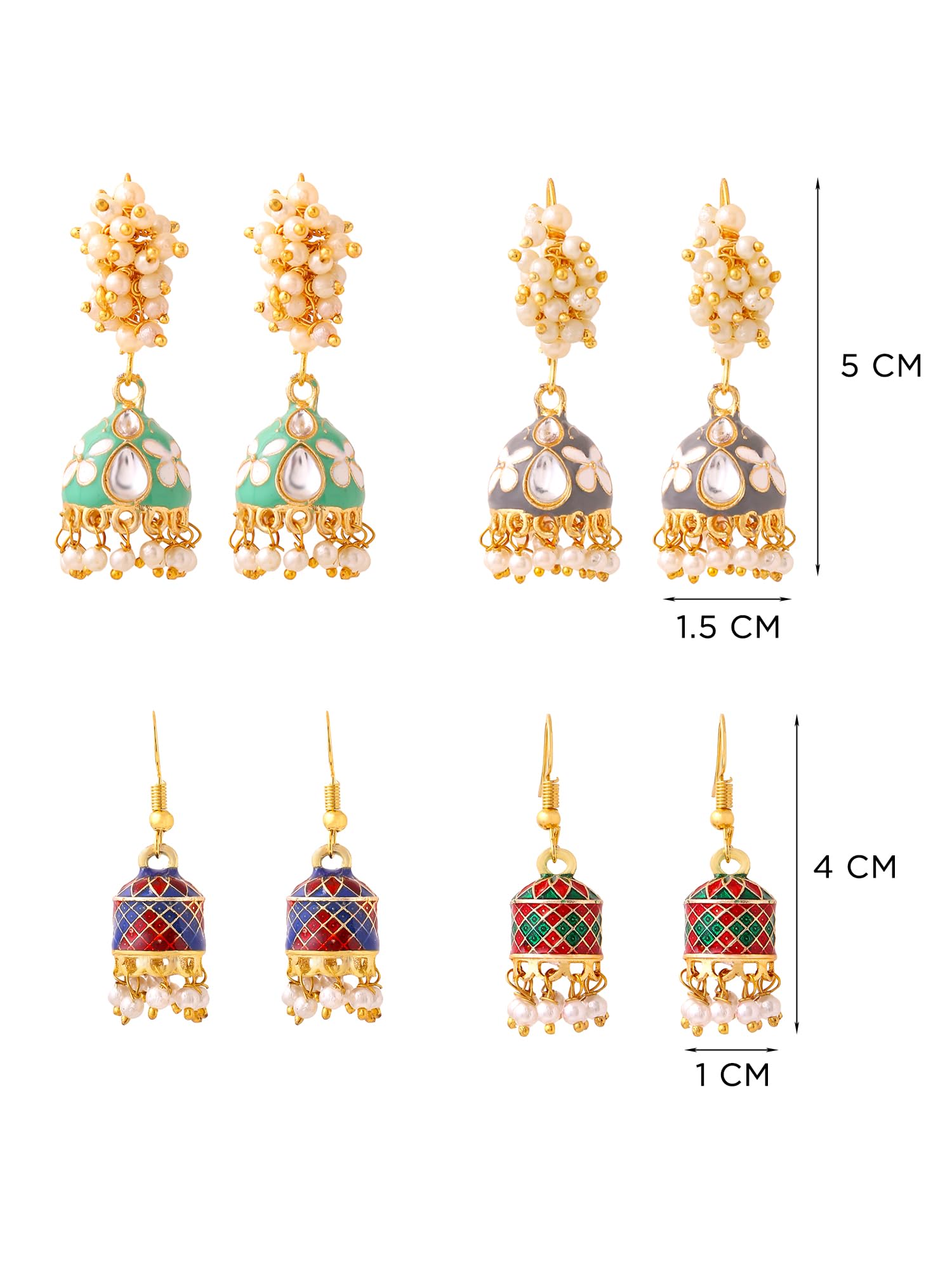 - HIGH-QUALITY MATERIALS: Crafted with an alloy base and gold plating, these multicolor Meenakari jhumka earrings are beautifully detailed with hanging pearls. The set comprises 4 pairs of traditional Rajasthani-style earrings, ensuring a versatile option for everyday wear or special occasions.