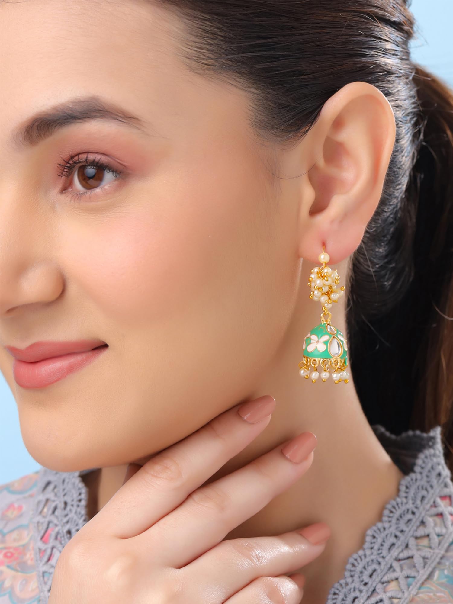- High-Quality Materials: Crafted with a durable alloy base and enhanced with luxurious gold plating, these earrings are not only beautiful but also built to last. The intricate Meenakari detailing and hanging pearls add a captivating charm.