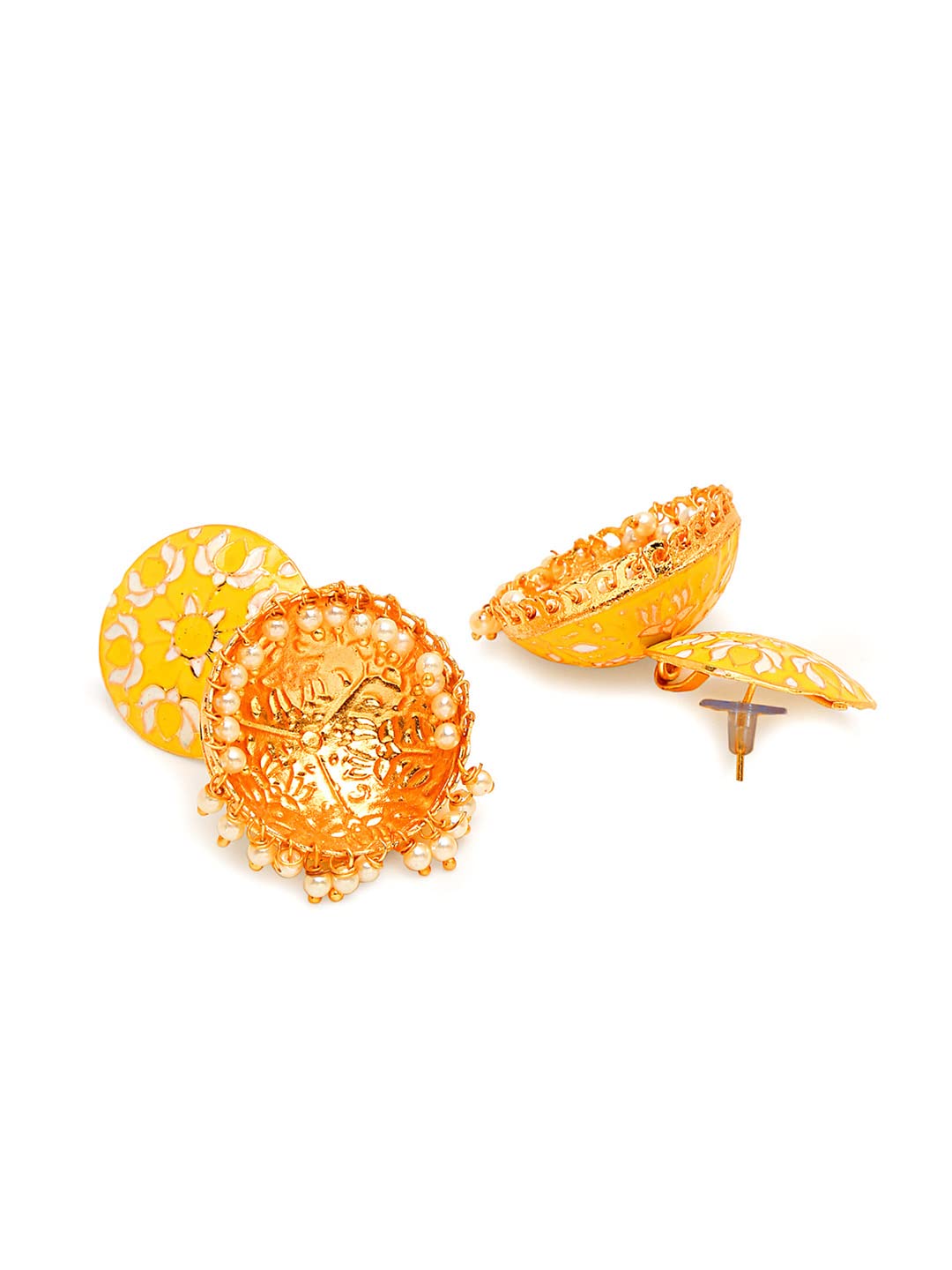 Discover the Elegance of Yellow Chimes Meenakari Jumka Earrings